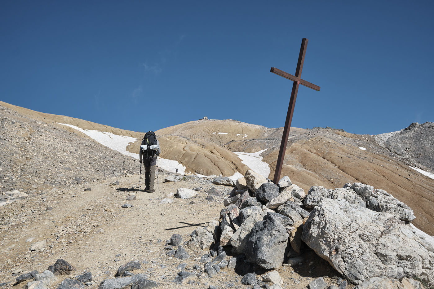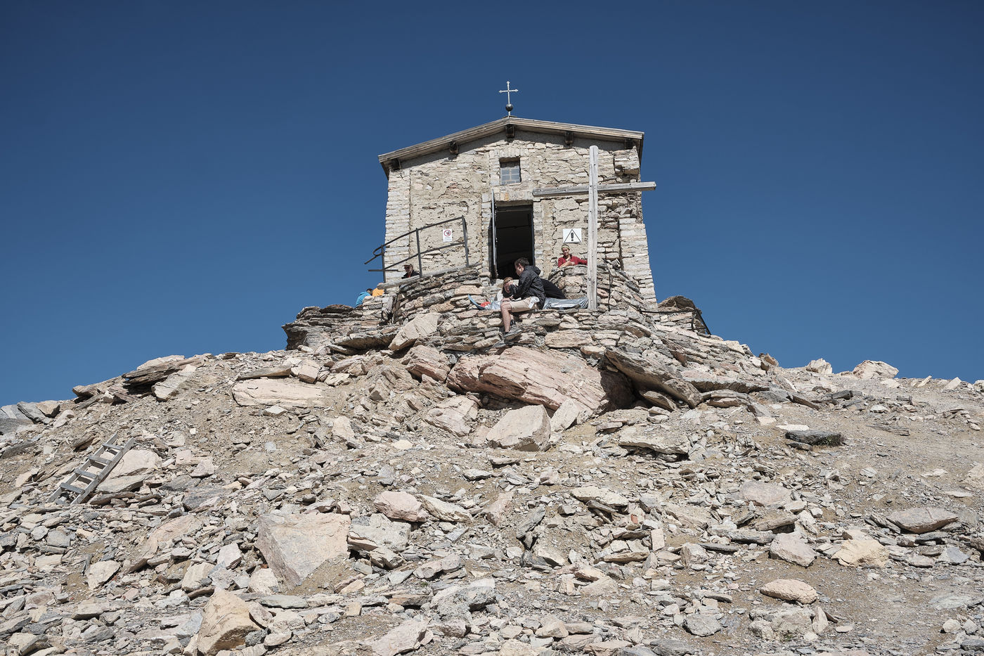 Its summit shelters a small chapel, Notre-Dame-des-sept-douleurs, where people have been coming on pilgrimage since at least the 15th century: rebuilt several times (in wood in 1694, then in stone in 1897), the building suffers from its high altitude and the periods of frost and thaw. It is also a small territorial aberration: although on French territory, it belongs to the Italian commune of Bardonecchia, situated just behind the border.