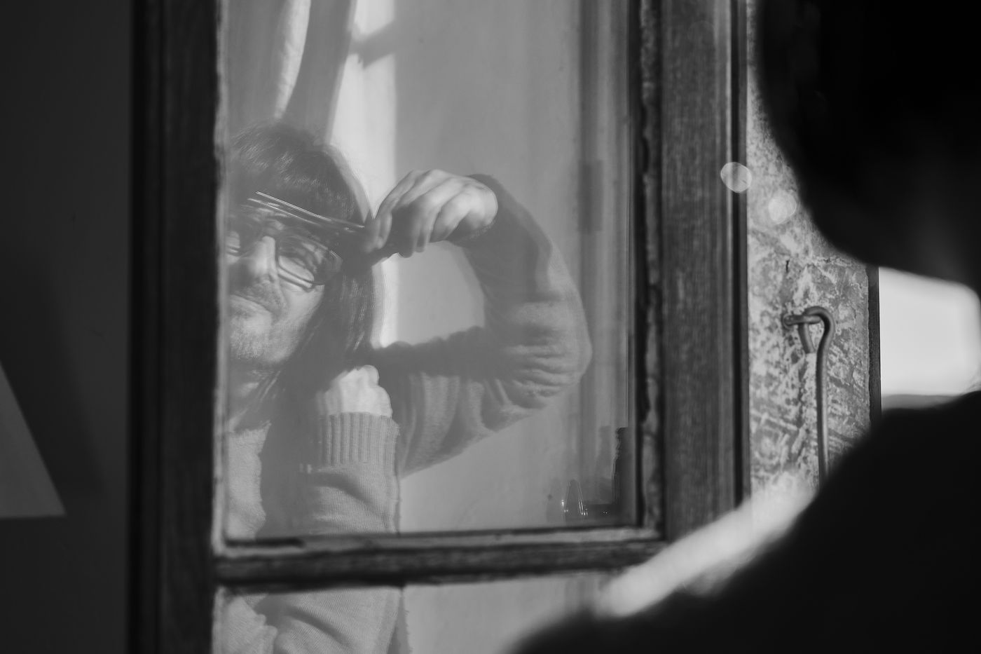 Ma fenêtre se fait aussi interface : c'est elle qui apporte un peu du dehors dedans, et un peu du dedans dehors, aussi. Elle ne me donne à voir que le monde auquel j'ai droit 23 heures sur 24, en dehors de l'heure de balade autorisée par les consignes de restriction sanitaires.