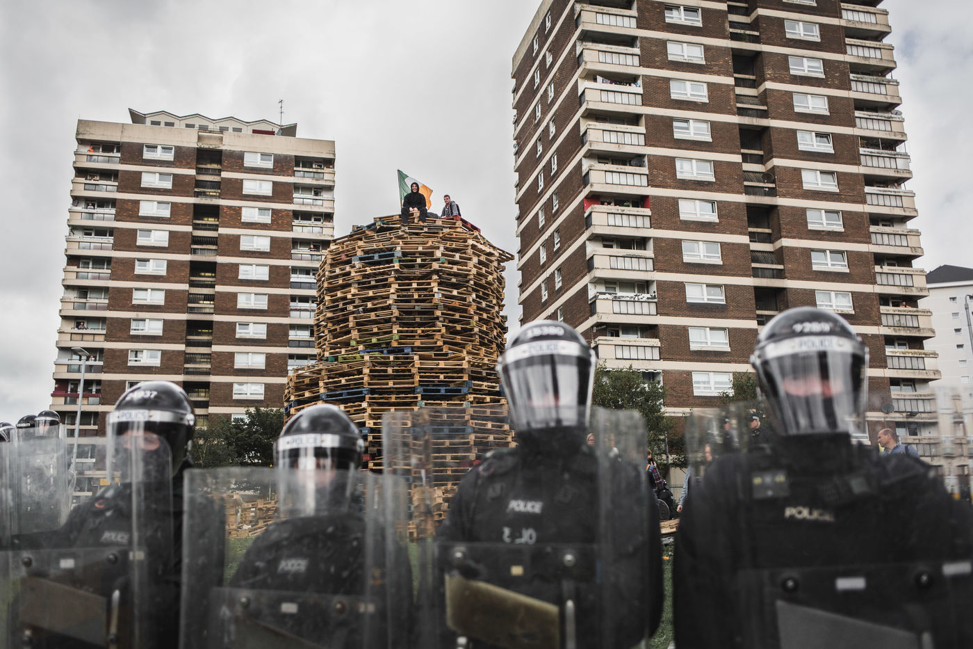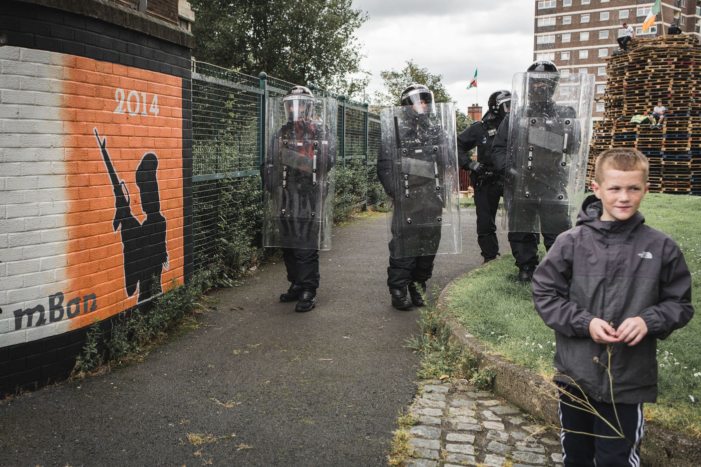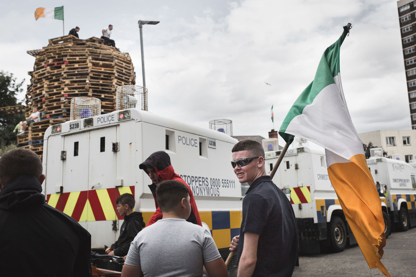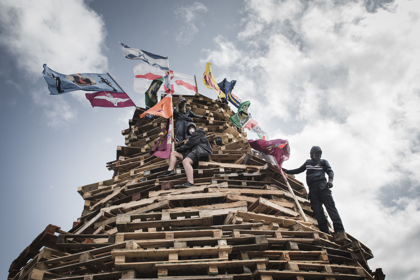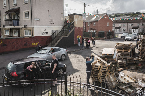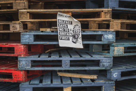 Chaque année au mois d'août, les villes de Belfast et de Derry-Londonderry - ancien bastion de l'IRA dans les années 70 dont le nom seul raconte la schizophrénie - est le théâtre d'un immense bonfire. Des adolescents, catholiques et républicains radicaux du quartier pauvre du Bogside, jettent des cocktails molotov et embrasent un tas de palettes de bois et de drapeaux du Royaume-Uni, qu'ils ont collecté la semaine précédente. Une des dernières manifestations de la dissidence républicaine en Irlande du Nord.