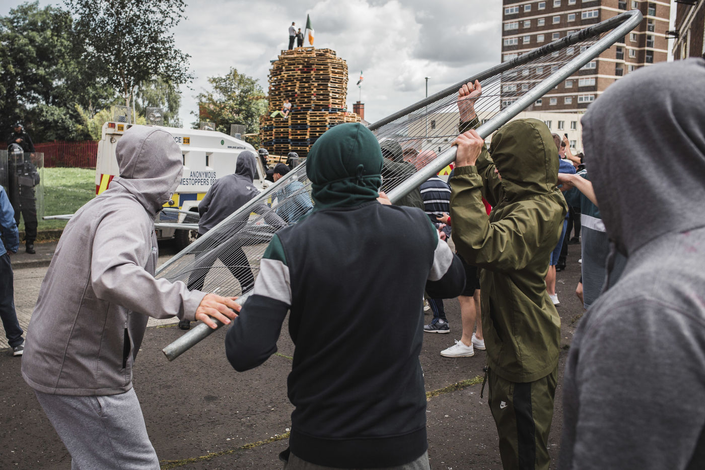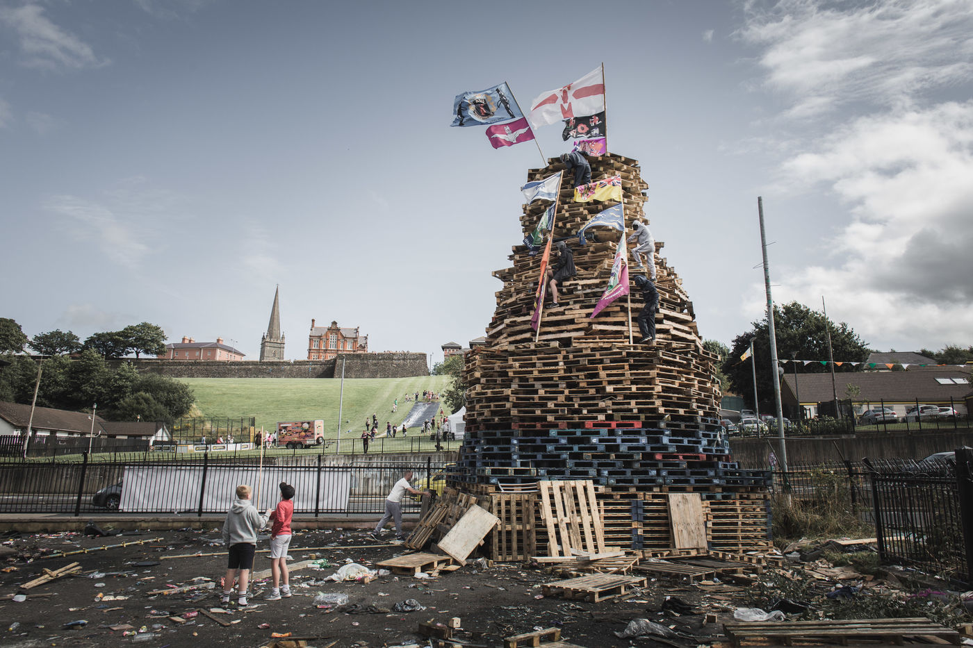 Every year in August, the cities of Belfast and Derry-Londonderry - a former IRA stronghold in the 1970s whose name alone tells the tale of schizophrenia - are the scene of a huge bonfire. Teenagers, radical Catholics and Republicans from the poor Bogside district, throw molotov cocktails and set fire to a pile of wooden pallets and UK flags they collected the week before. One of the last manifestations of Republican dissidents in Northern Ireland.