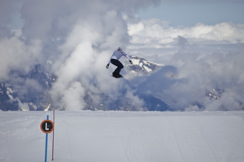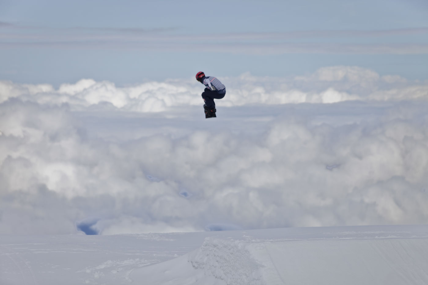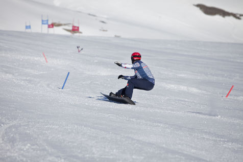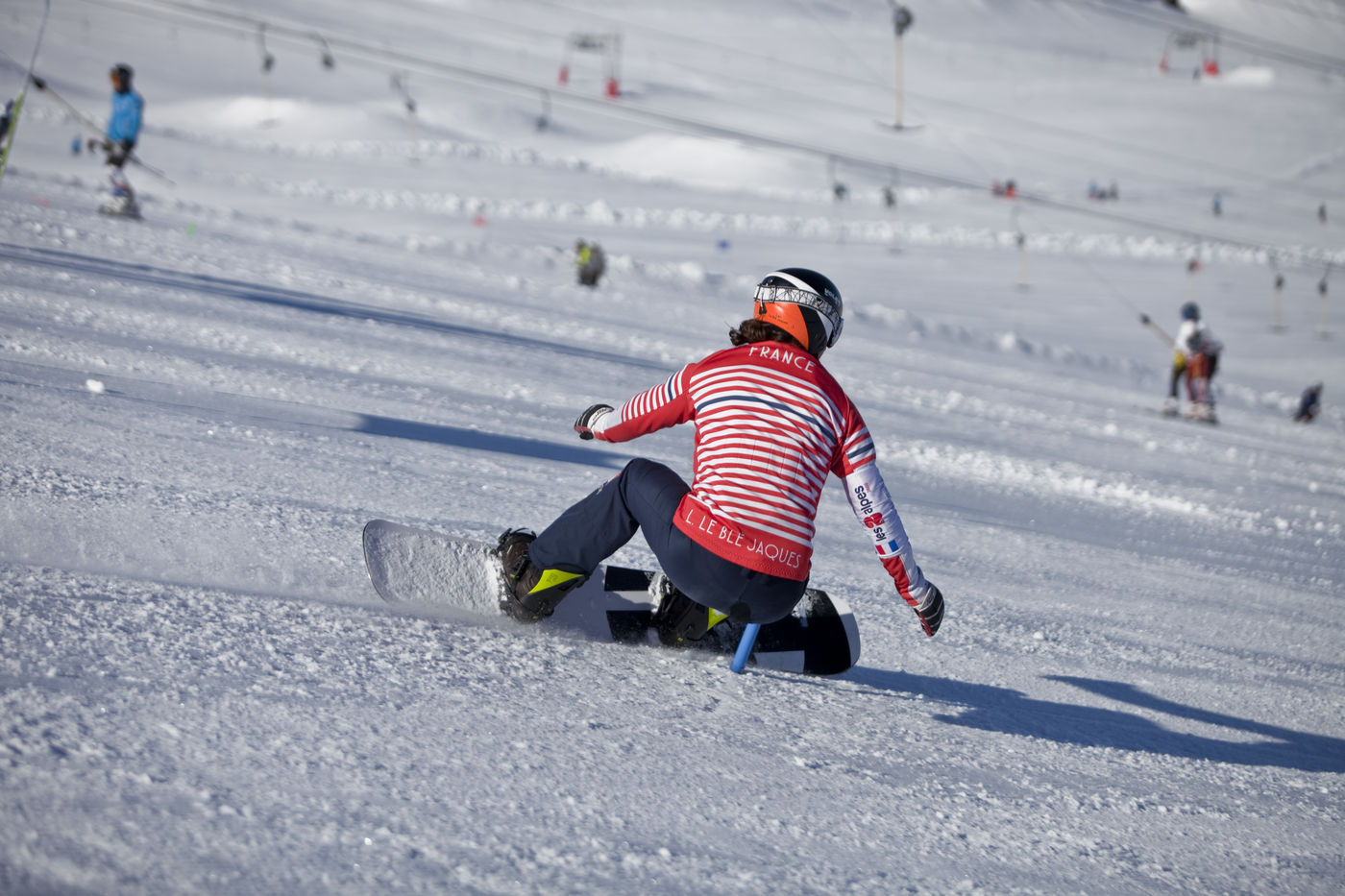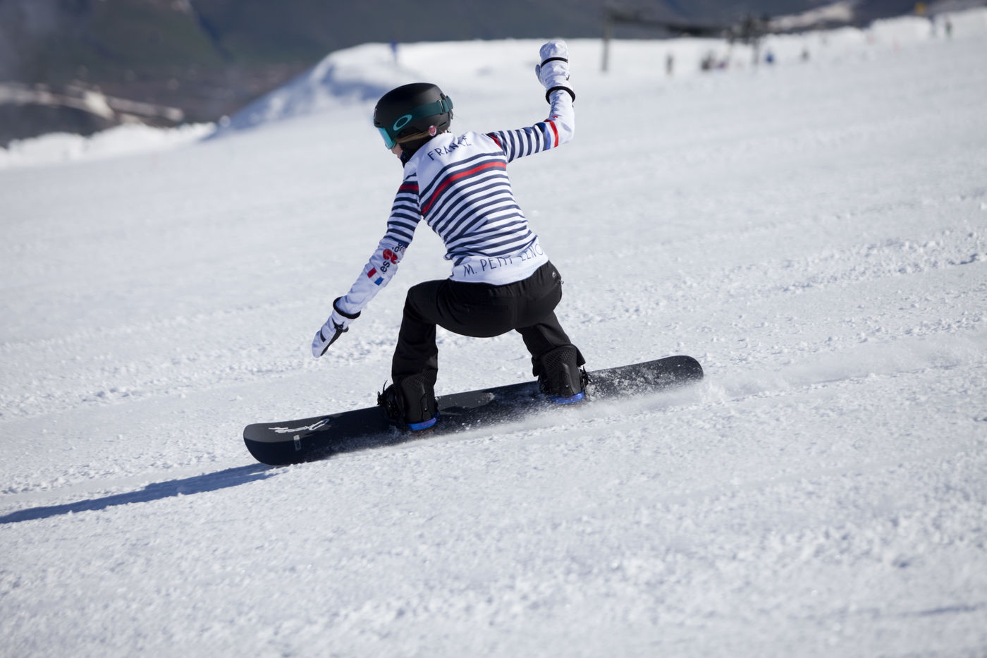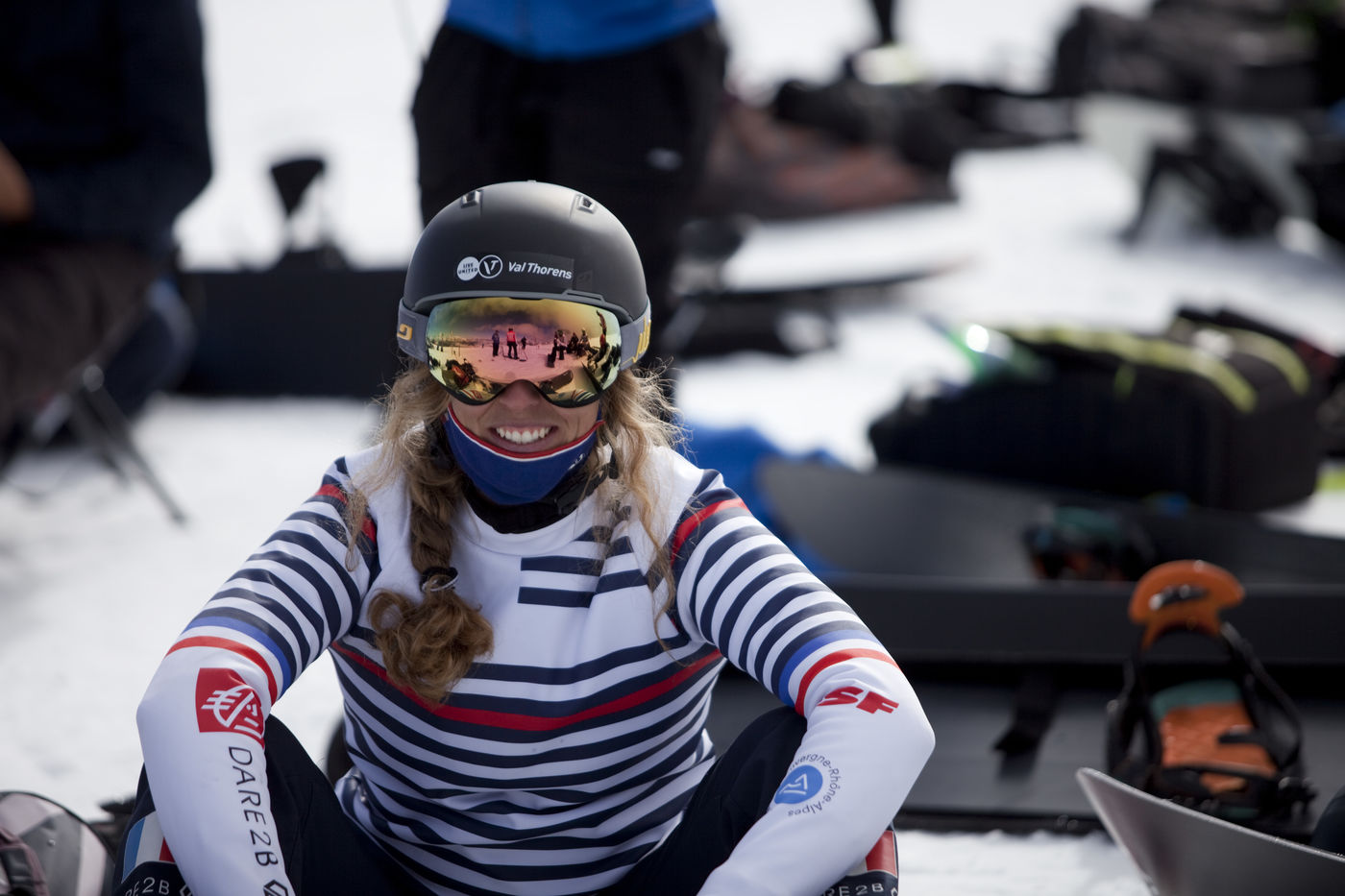 J'ai pu suivre pendant une journée l'équipe de France de snowboard cross. La journée a commencé sur le glacier à 6h30 par un entraînement en slalom géant, puis des passages sur une bosse pour perfectionner la technique de saut.
