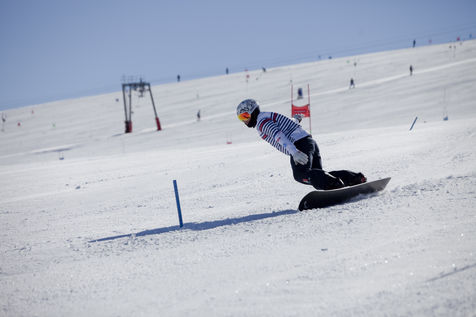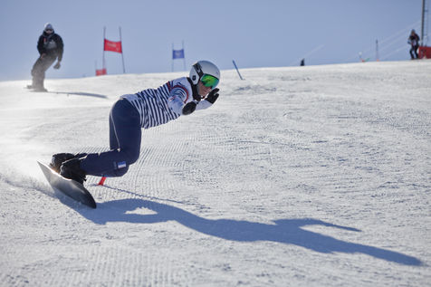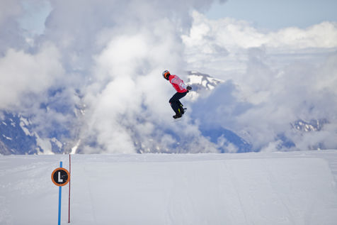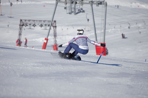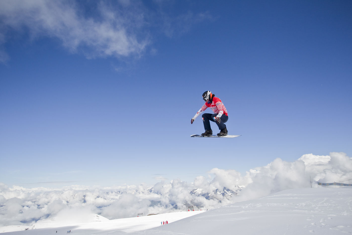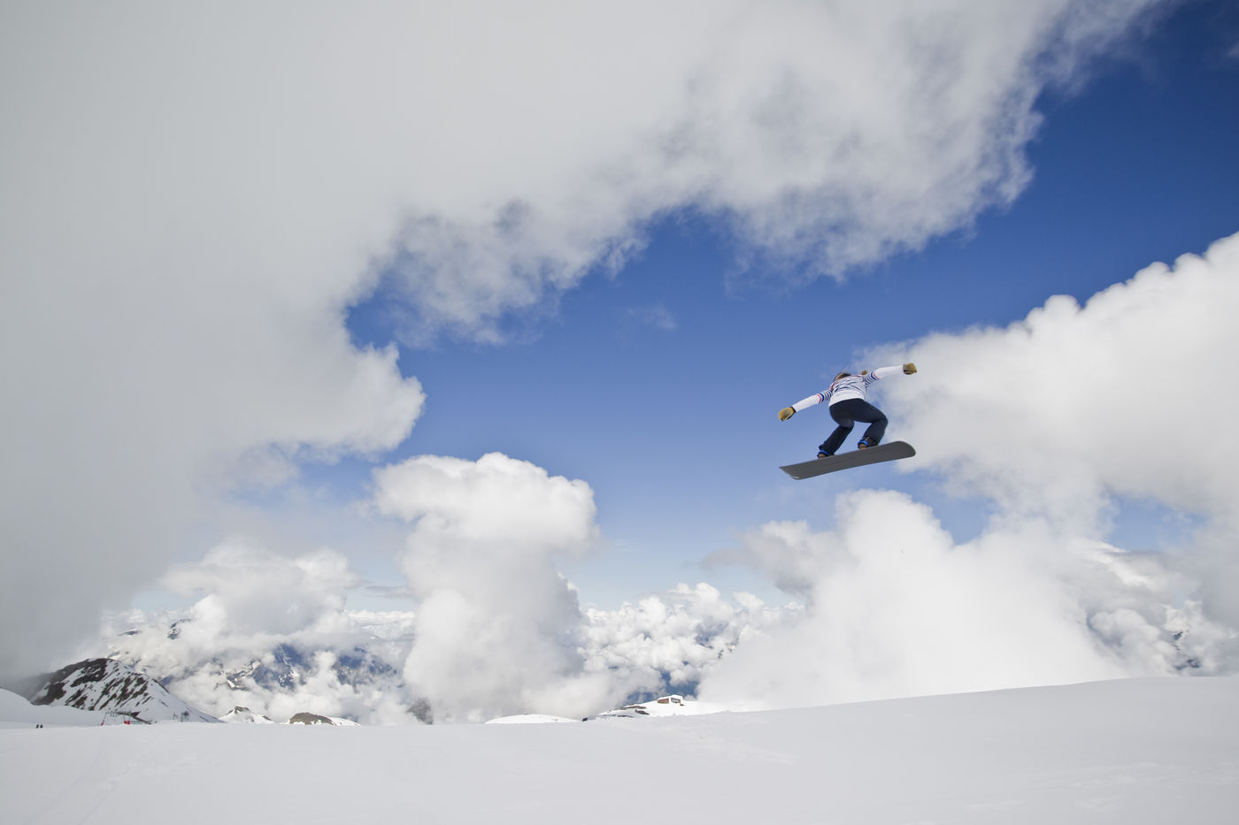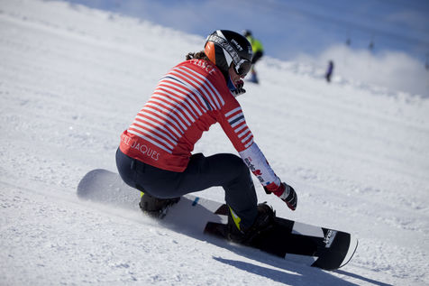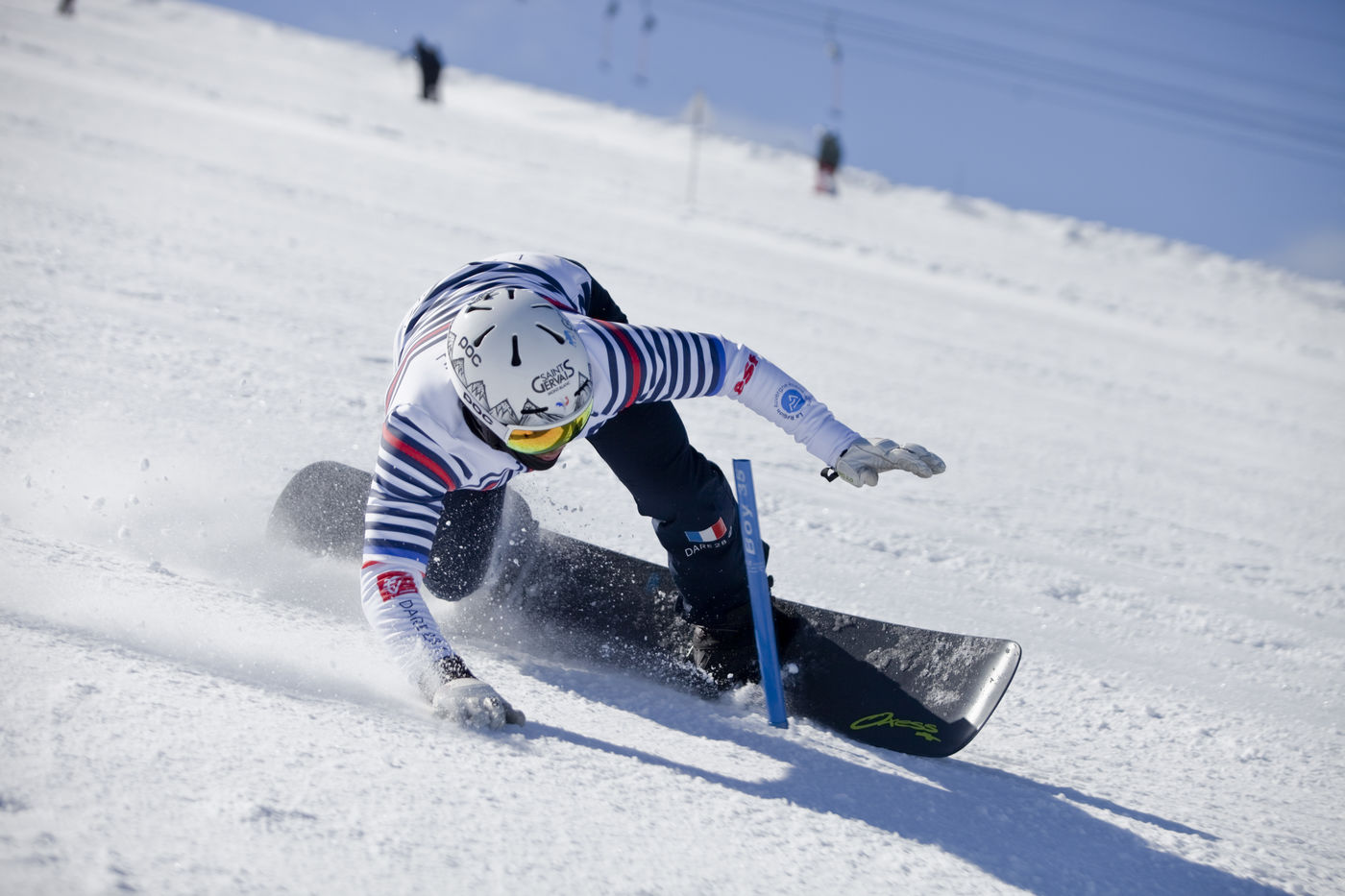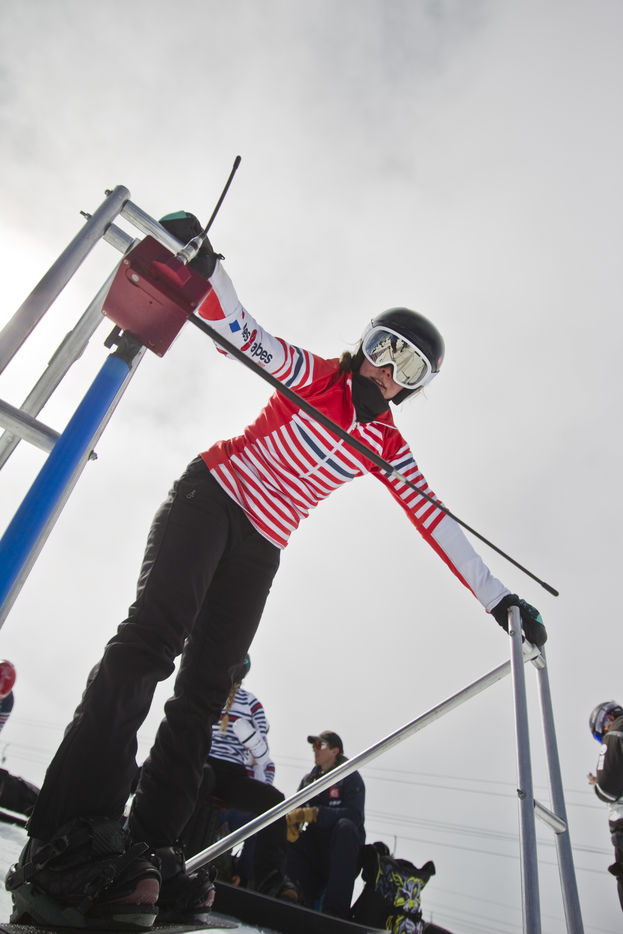 J'ai pu suivre pendant une journée l'équipe de France de snowboard cross. La journée a commencé sur le glacier à 6h30 par un entraînement en slalom géant, puis des passages sur une bosse pour perfectionner la technique de saut.