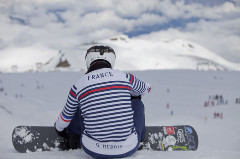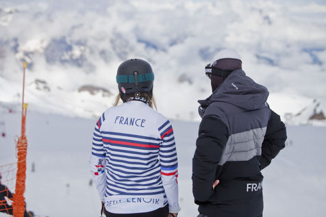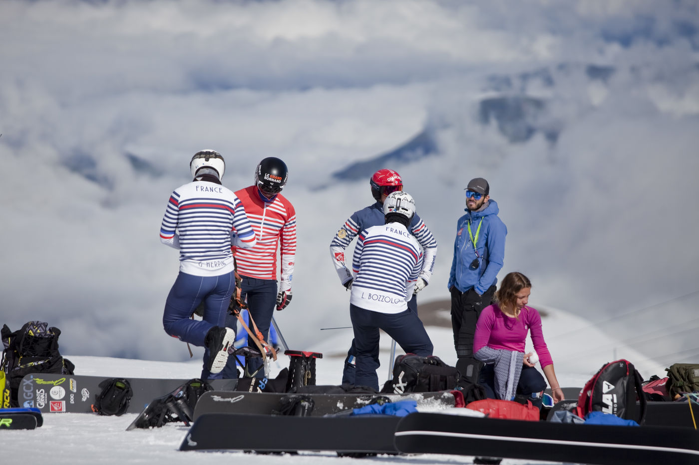 I was able to follow the French snowboard cross team for a day. The day started on the glacier at 6.30am with a training in giant slalom, then passages on a bump to perfect the technique of jumping. Return to the hotel around 12:30 p.m. for a well-deserved healthy meal. After a short nap, while the technicians prepare the boards for the next day, it was muscle building for all, then bodybuilding for some, cycling for others or even jogging. The day will end with an individual video feedback during which coaches Nelly and Kevin go over the technical details with their riders.