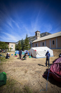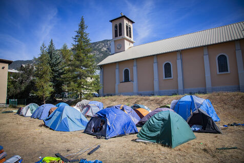 Suite à la fermeture du lieu d'accueil pour les exilés à Briançon, "Les Terrasses Solidaires", la paroisse de Briançon a mis à disposition ses locaux et a autorisé l'installation de tentes à l'extérieur, et ce, pour une durée indéterminée. Environ une centaine de personnes sont accueillies avec la bénédiction de l'évêque de Gap.