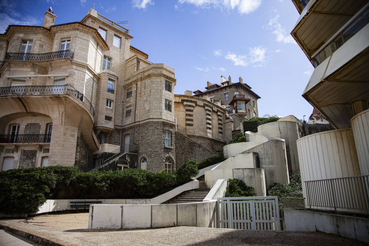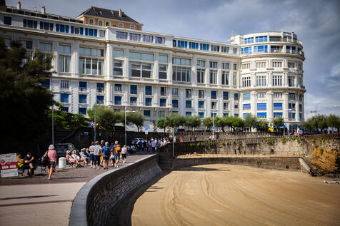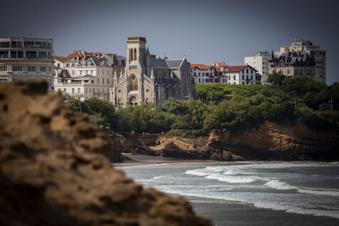 Biarritz, élégante ville balnéaire de la côte basque, dans le sud-ouest de la France, est une destination populaire depuis que les têtes couronnées de toute l'Europe l'ont choisie comme lieu de villégiature dans les années 1800. L'endroit est également prisé des surfeurs pour ses grandes plages et ses écoles de surf. Le rocher de la Vierge, emblème de Biarritz, est un affleurement rocheux surmonté d'une statue de la Vierge Marie. Accessible par une passerelle, le rocher offre une vue panoramique sur le golfe de Gascogne