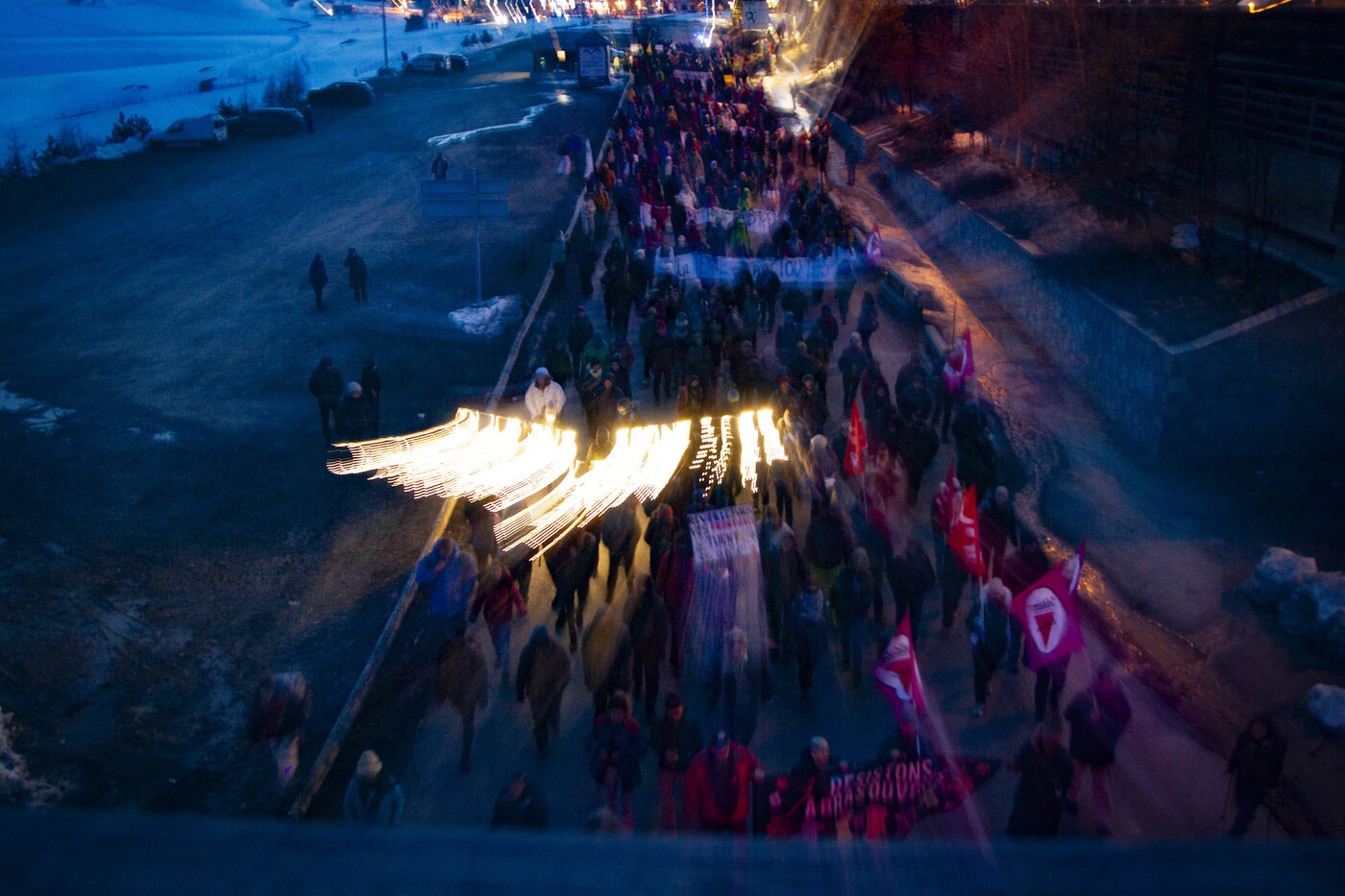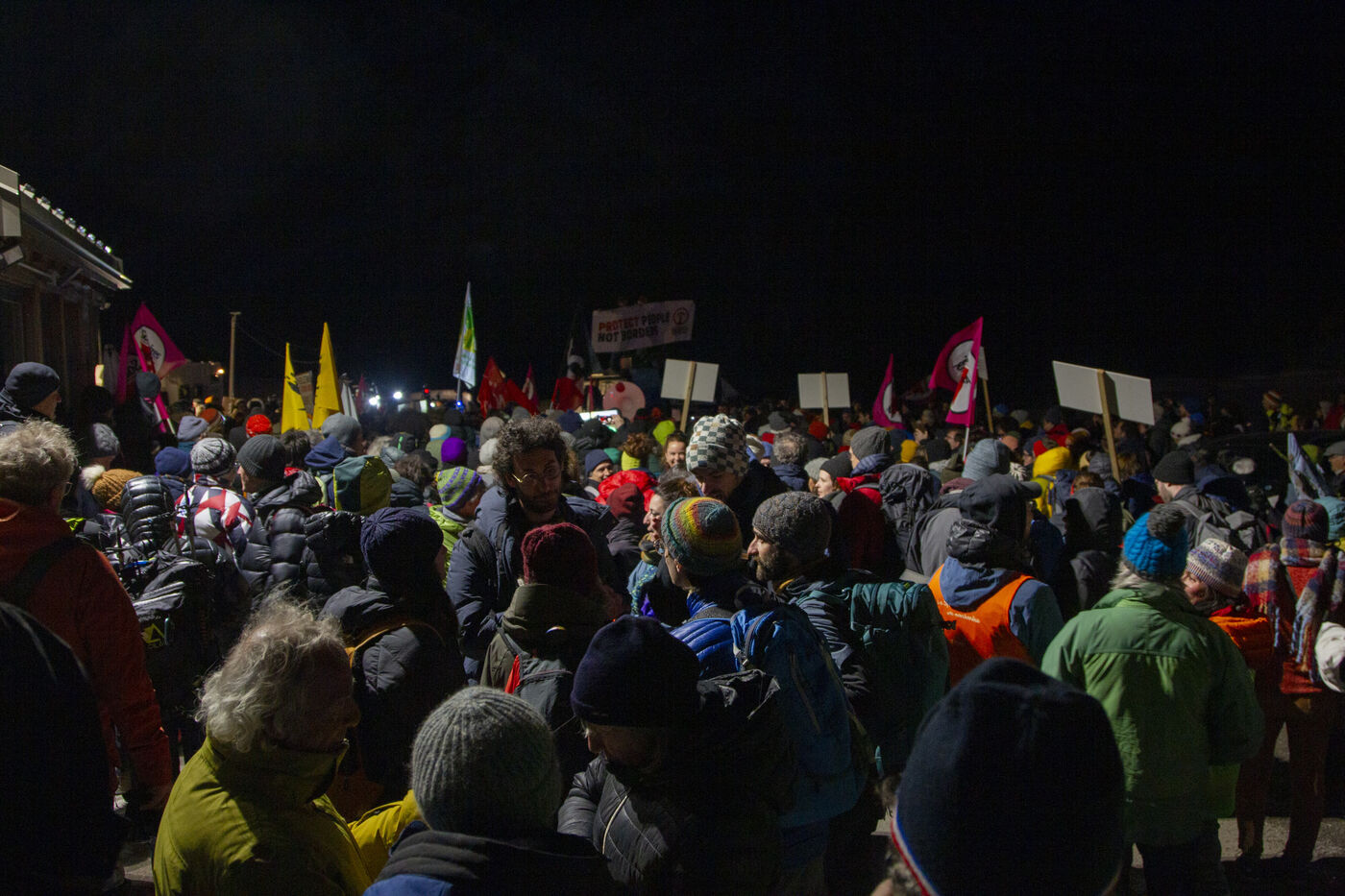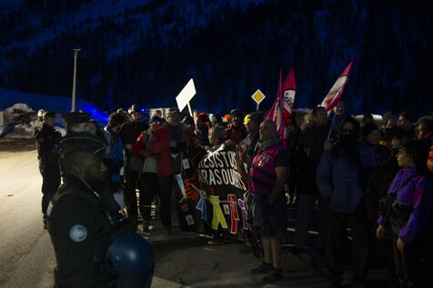Ce samedi 16 mars, à Montgenèvre, un nombre important de personnes se sont rassemblées pour exprimer leur opposition à la militarisation de la frontière et ses conséquences. Entre août et octobre 2023, trois individus ont tragiquement perdu la vie dans la région de Briançon. Ces décès sont attribués directement aux choix politiques qui maintiennent un dispositif répressif à la frontière, entravant ainsi le passage des personnes exilées. Pendant plus de deux heures, les manifestants ont exprimé leur colère et leur désapprobation des méthodes policières envers les migrants devant le poste de la Police aux Frontières à Montgenèvre. Avant de partir pour la Grande Maraude,, ils ont partagé un repas à la Maison de la Montagne.