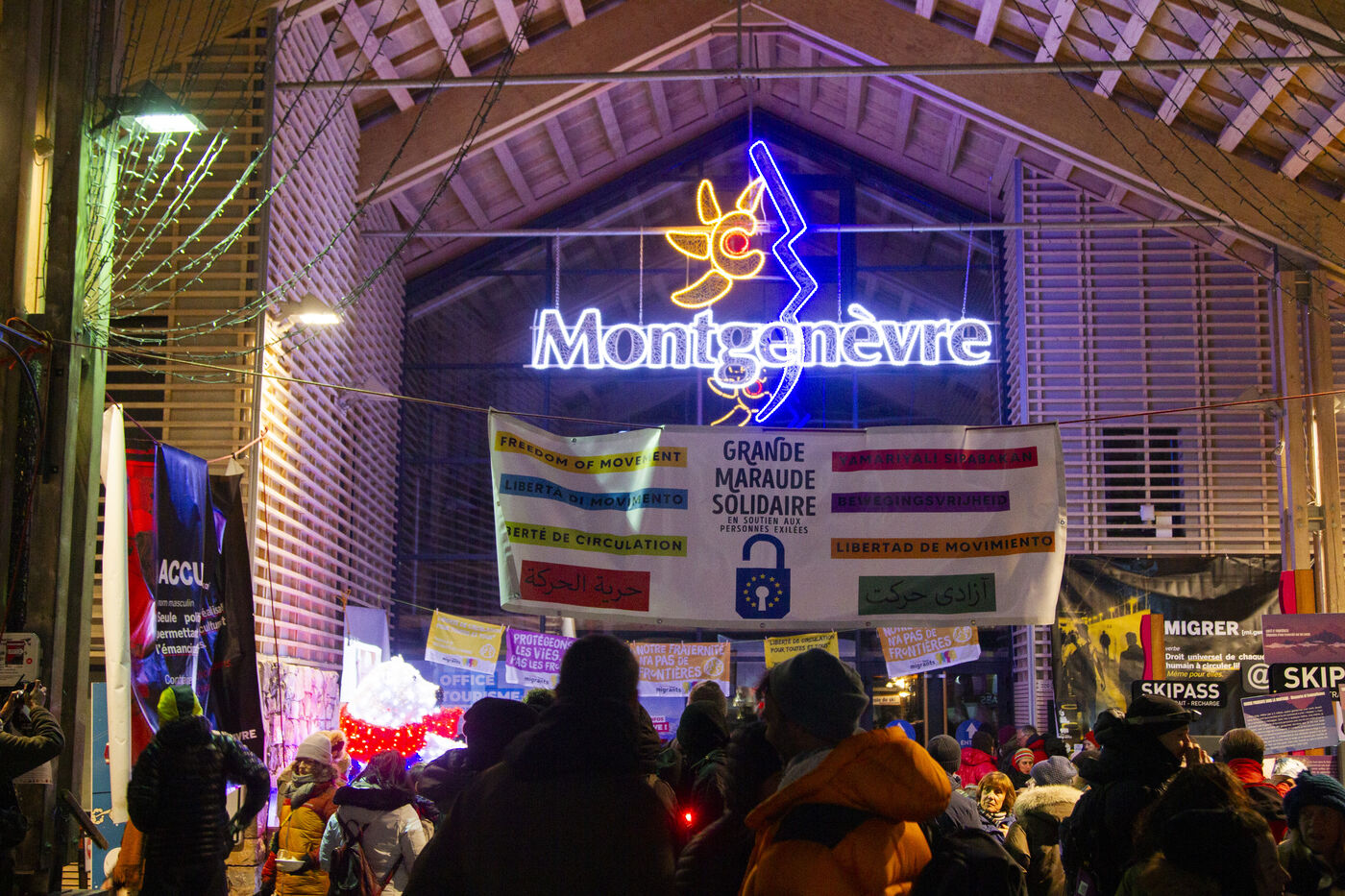 On Saturday, March 16th, in Montgenèvre, a significant number of people gathered to express their opposition to the militarization of the border and its consequences. Between August and October 2023, three individuals tragically lost their lives in the Briançon region. These deaths are directly attributed to political choices that maintain a repressive border enforcement, thereby hindering the passage of displaced individuals. For over two hours, protesters voiced their anger and disapproval of police methods towards migrants outside the Police aux Frontières station in Montgenèvre. Before embarking on their outreach efforts, they shared a meal at the Maison de la Montagne.