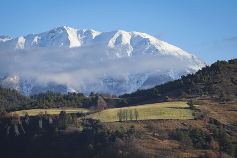 Des images de paysages prises dans la campagne des Alpes, au petit matin, avec une brume et des sommets enneigés, créant une impression de lieu mystique.
