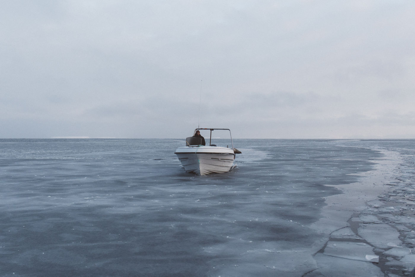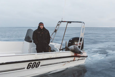Après plusieurs heures de navigation, pas de traces de narvals. Les chasseurs rentreront au port déçu, malgré les quatre phoques qu'ils ont pu chasser. Une fois les bateaux solidement attachés, ils jettent les phoques à l'eau pour éviter qu'ils congèlent et les voilà partis se réchauffer quelques minutes.