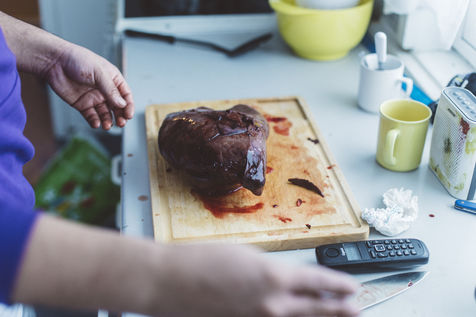 Après avoir enlevé la peau, qu'il vendra quelques euros dans un village voisin, il découpe l'animal. Déjà, les voisins sont assis à côté et ramènent un morceau de viande à la maison. Le foie, les reins et le pancréas seront réservé au chasseur, qui les dégustera crus. L'esprit de communauté est très fort dans ce village et chaque animal chassé est partagé entre tous ceux qui en ont besoin.