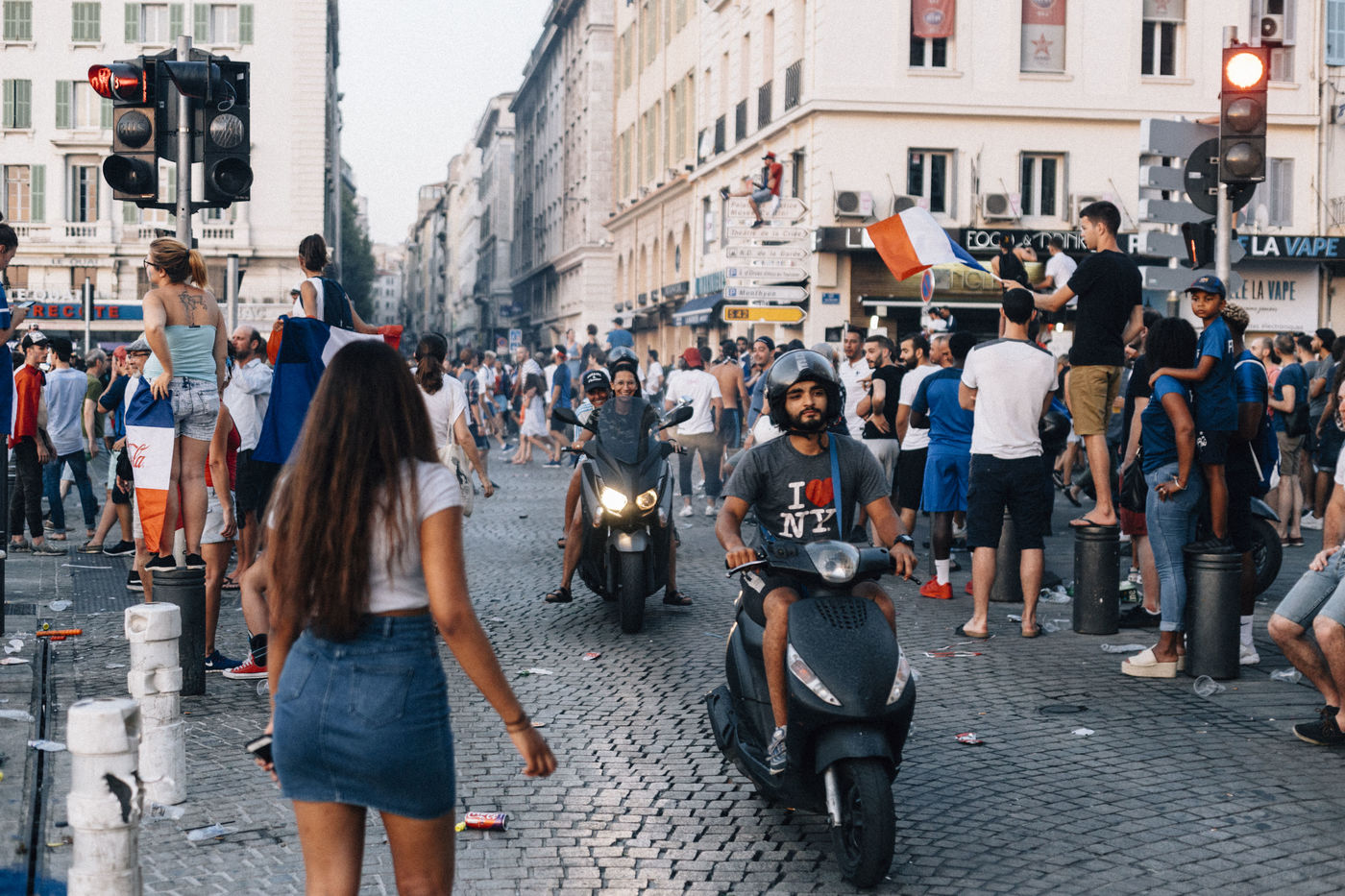 15 july 2018. Marseille. France. In the street of Marseille, french people celebrates for France football team victoray at FIFA Worldcup 2018 finale against Croatia.