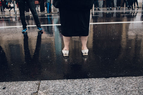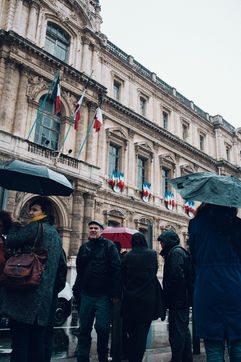 Par terre, au pied des barrières de police et devant les draps blanc qui masquent la scène, quelques bougies tremblotent. Des mots, collés aux murs, crient le chagrin et l'indignation : « Ce n'est pas la pluie ».