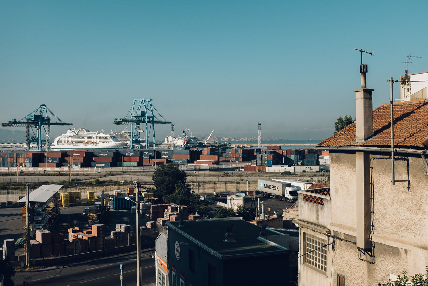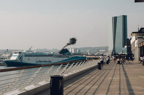 Illustration of the pollution related to cruise ships in Marseille. To the north of the city, the districts of Saint Henri and Saint André are the most exposed. Everywhere, fields of containers gnaw at the landscape and the Mistral pushes the smoke from the port towards the neighbouring houses every day. Initialy create for Society Magazine.