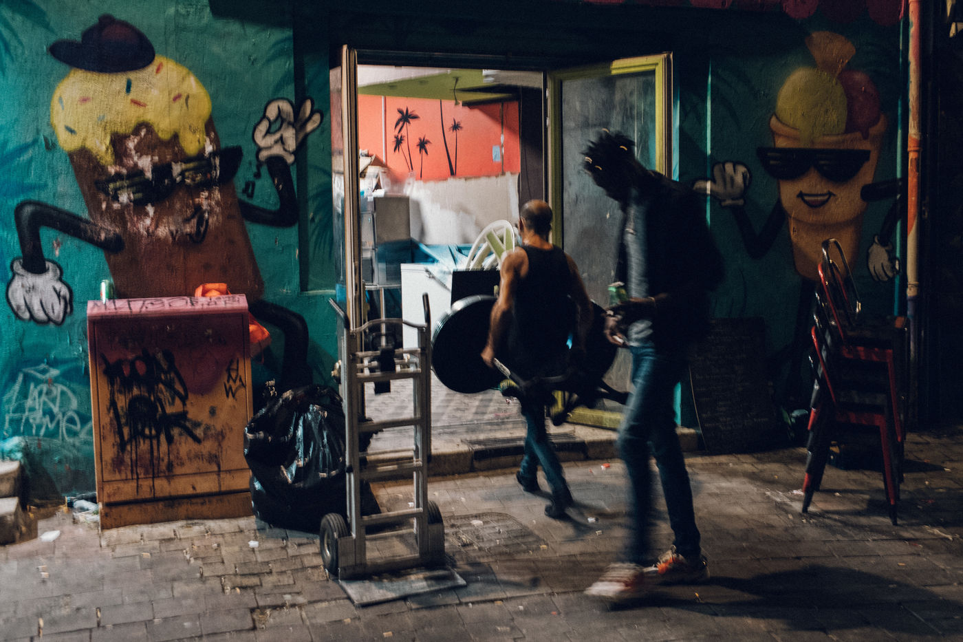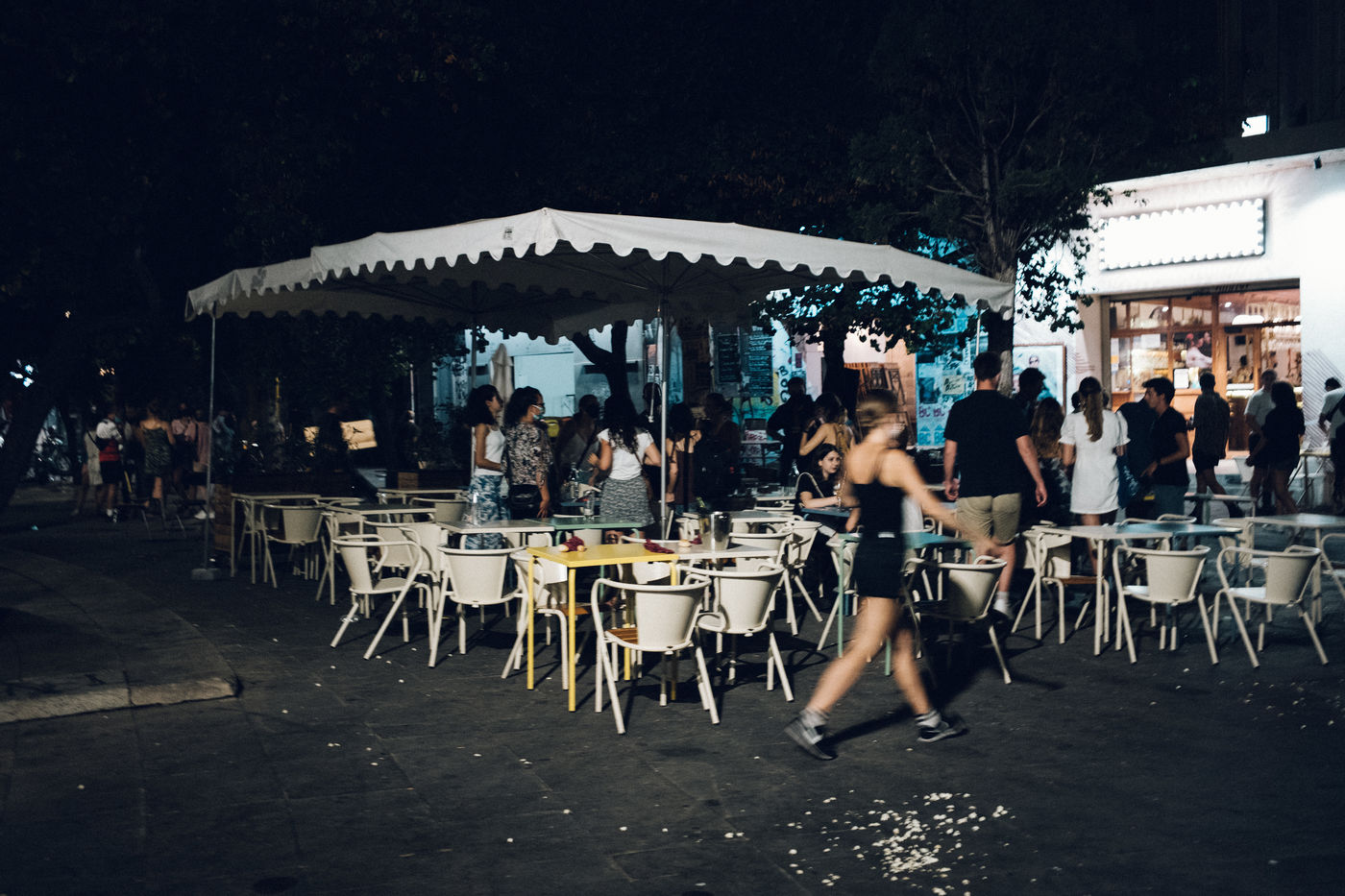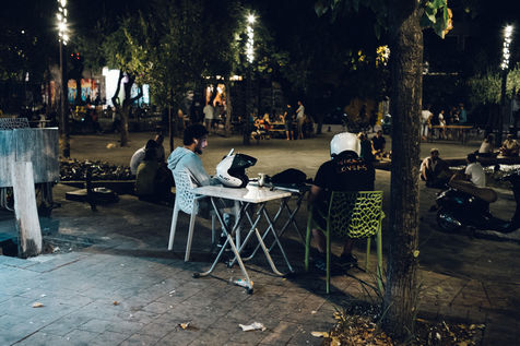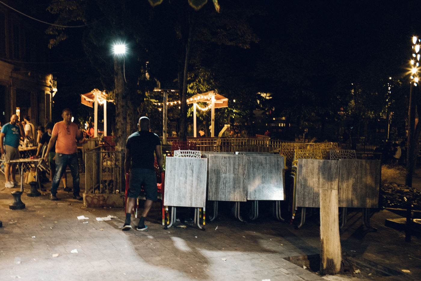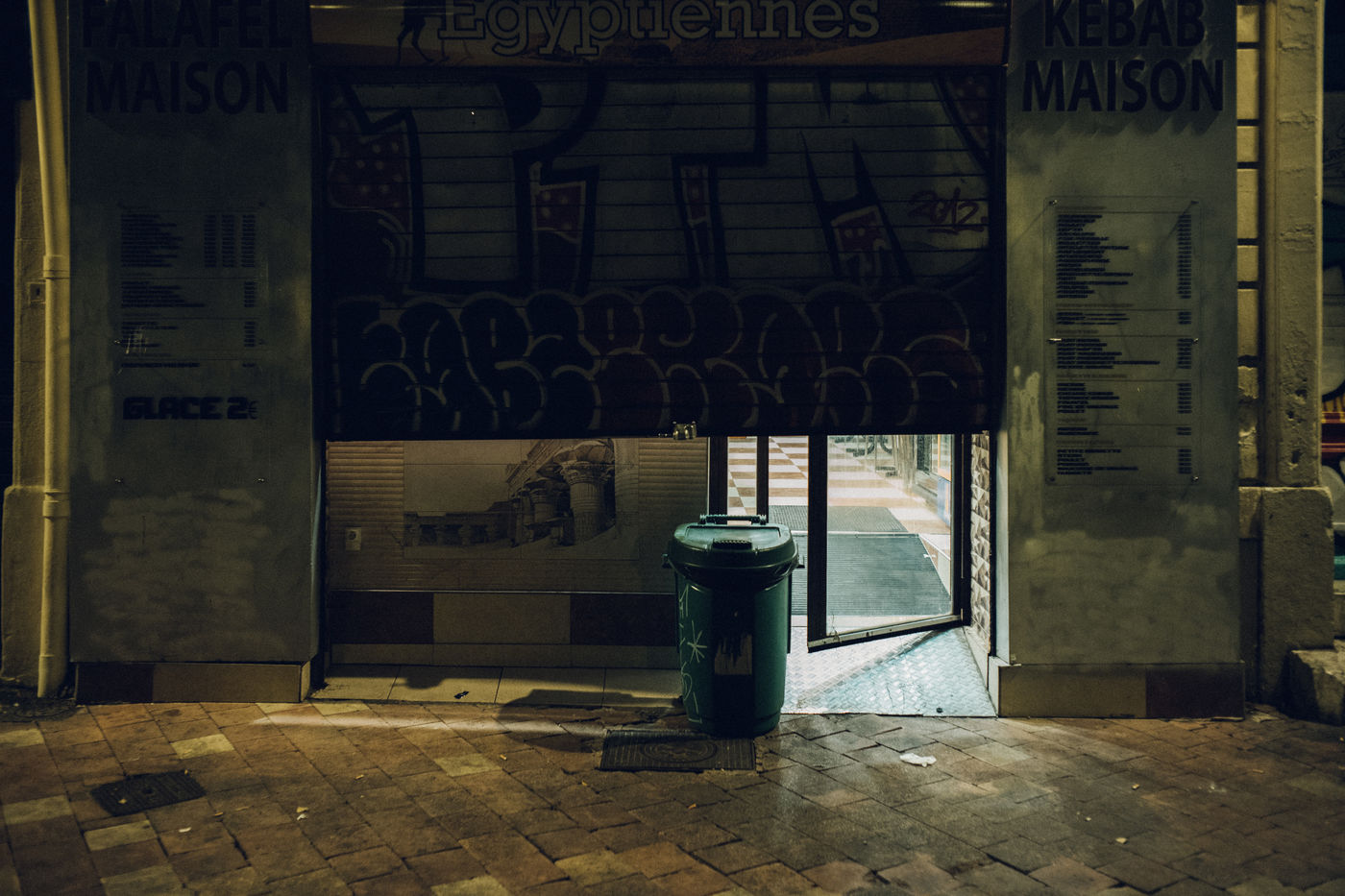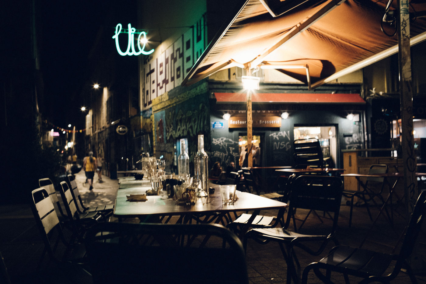 Suite à l'annonce du prefet les bars et restaurants doivent fermer leurs portes dès 23h. Inquiets ou résignés, les clients ont souvent quitté les terrasses dans le calme, et certains se sont installés à même le sol, tout à côté. Illustration sur le Cours Julien haut lieu des restaurants et bar à Marseille. Reportage réalisé pour Le Monde.