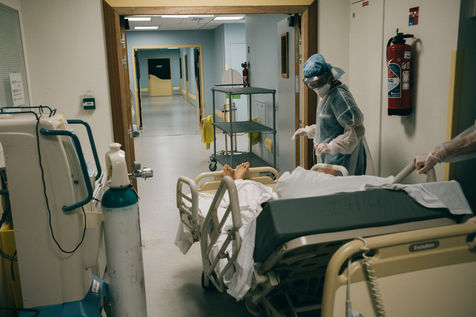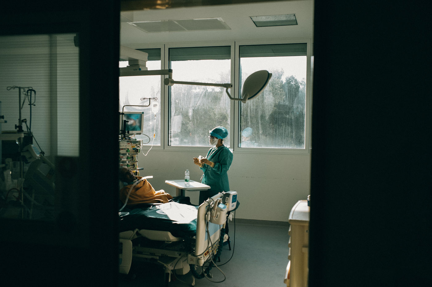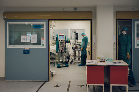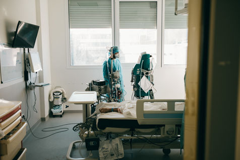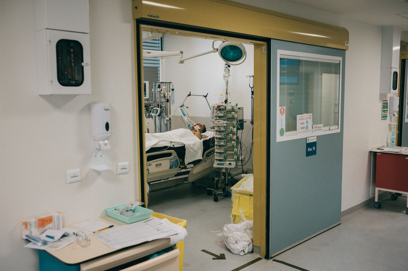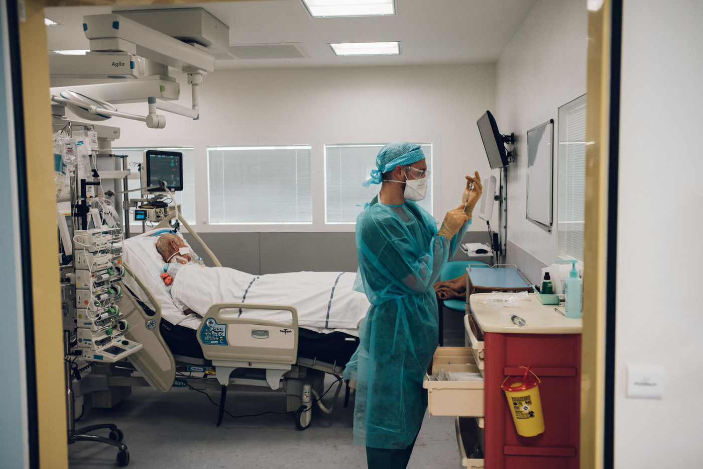 November, 13, 2020. Marseille. France. In the intensive care unit of the Timone Hospital in Marseille, where patients with COVID-19 are treated. As the second wave reaches its peak these days, the intensive care unit is under extreme stress.
