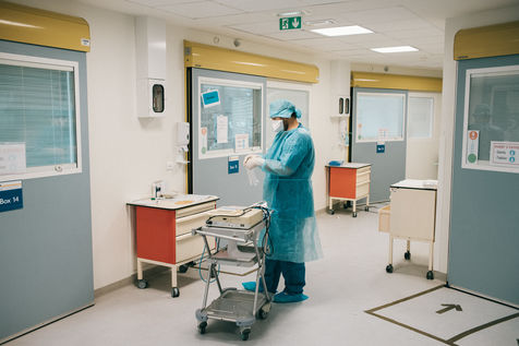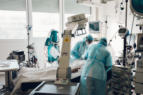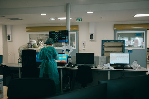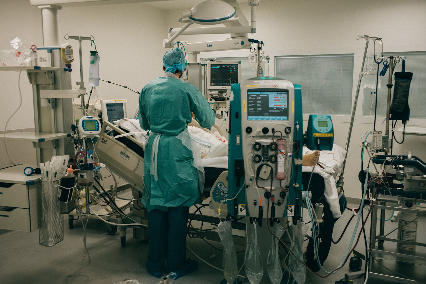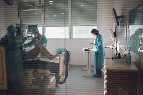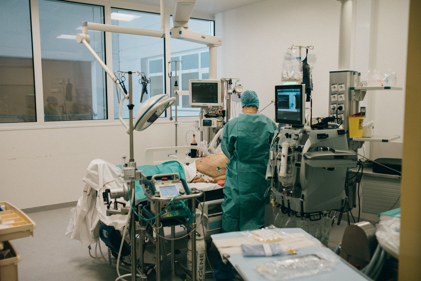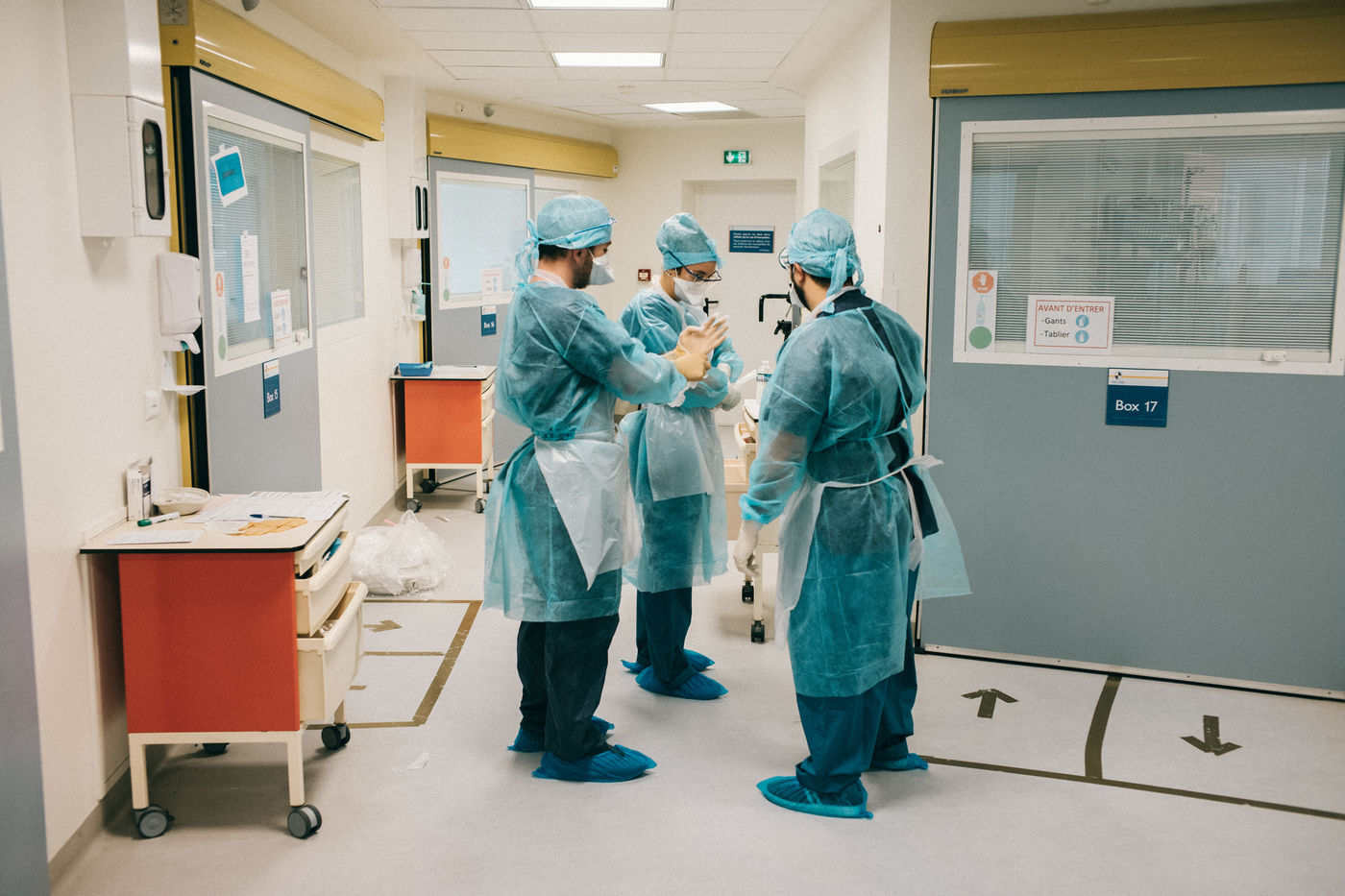 November, 13, 2020. Marseille. France. In the intensive care unit of the Timone Hospital in Marseille, where patients with COVID-19 are treated. As the second wave reaches its peak these days, the intensive care unit is under extreme stress.