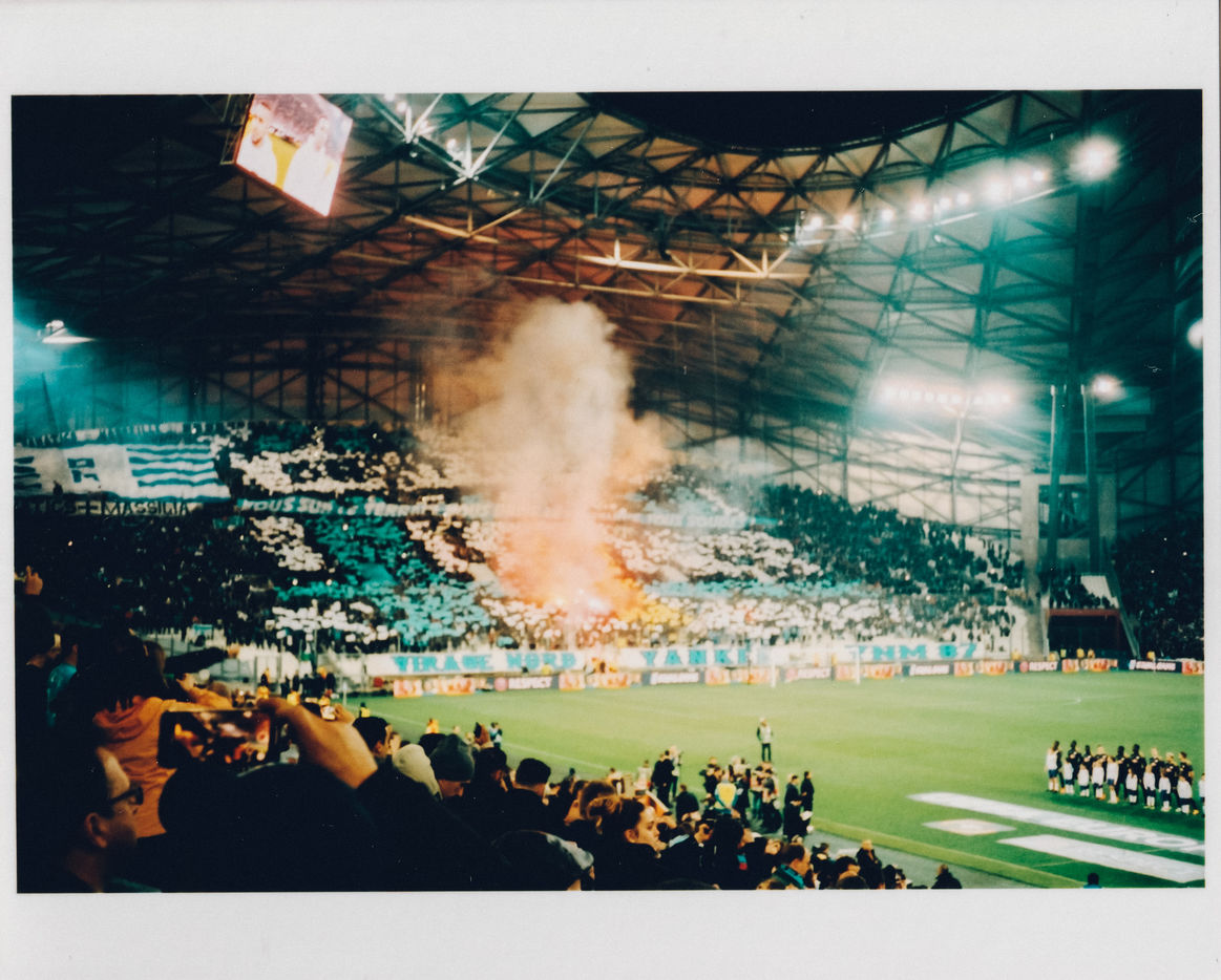 During the quarter-final match against Leipzig for the Euro. OM supporters set the mood.