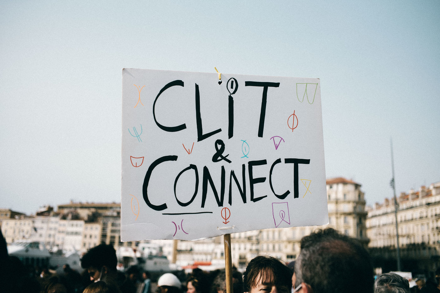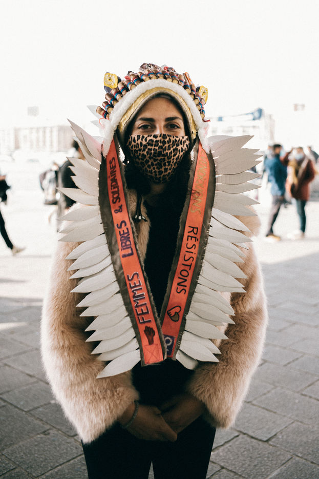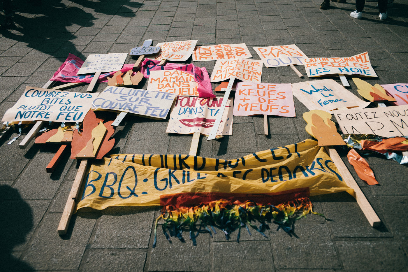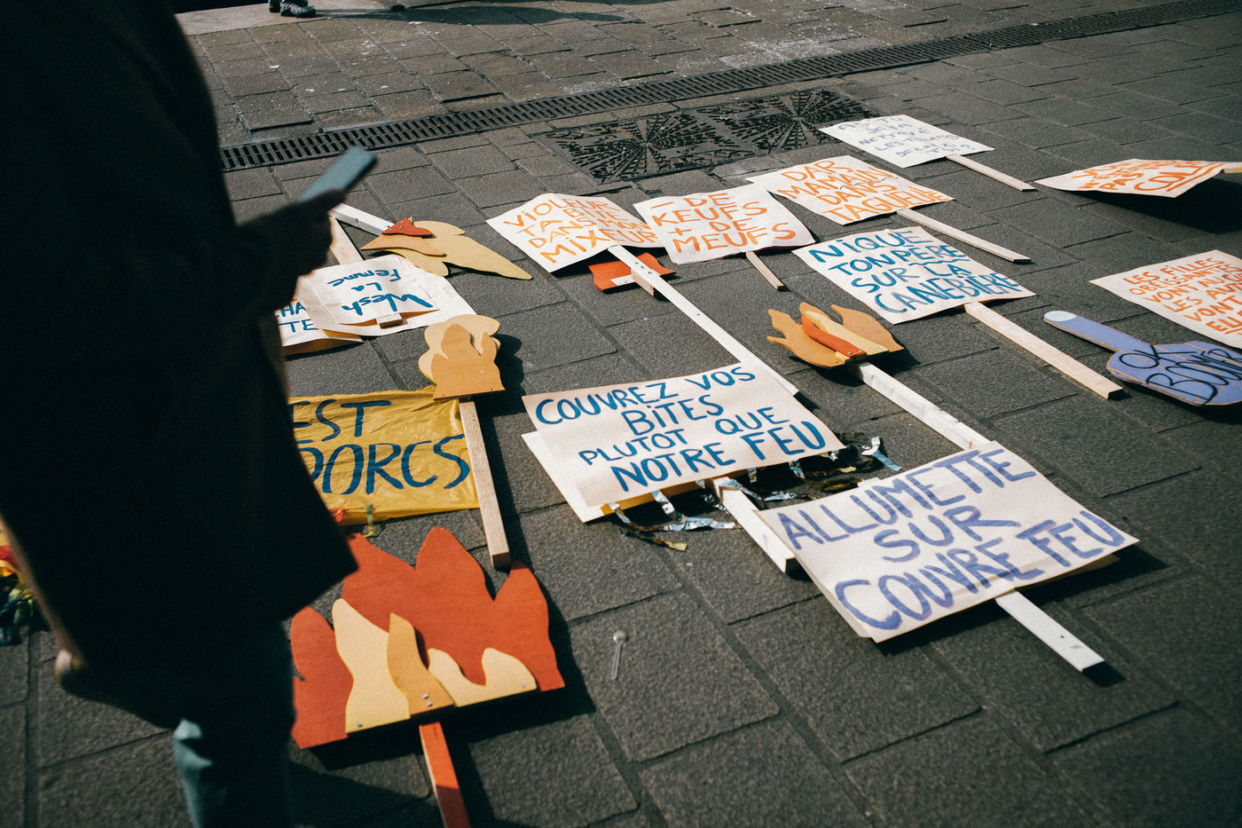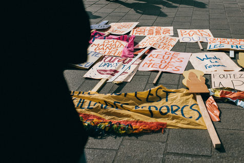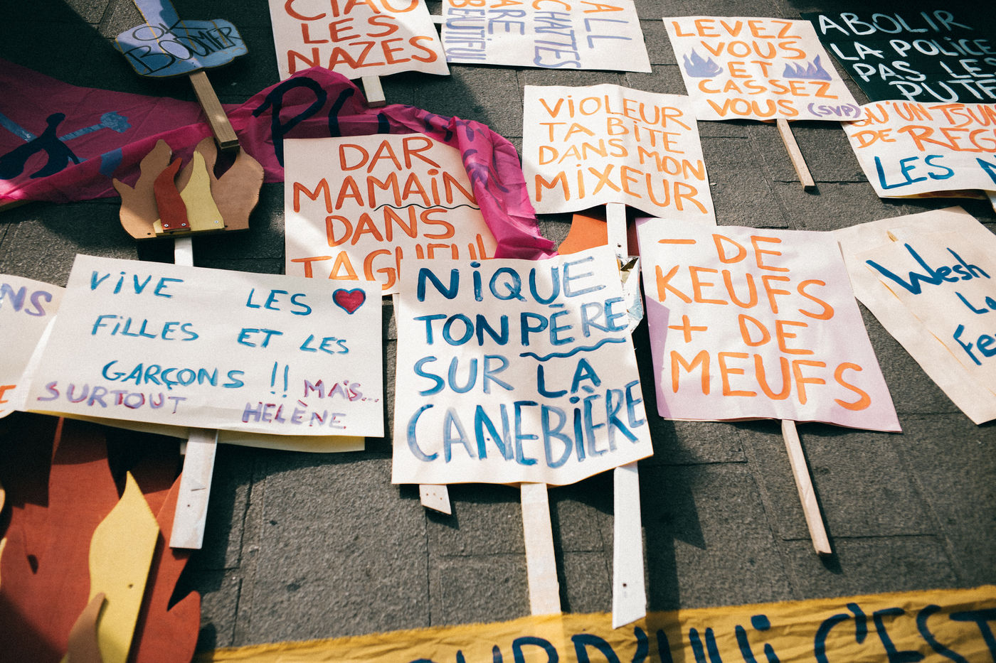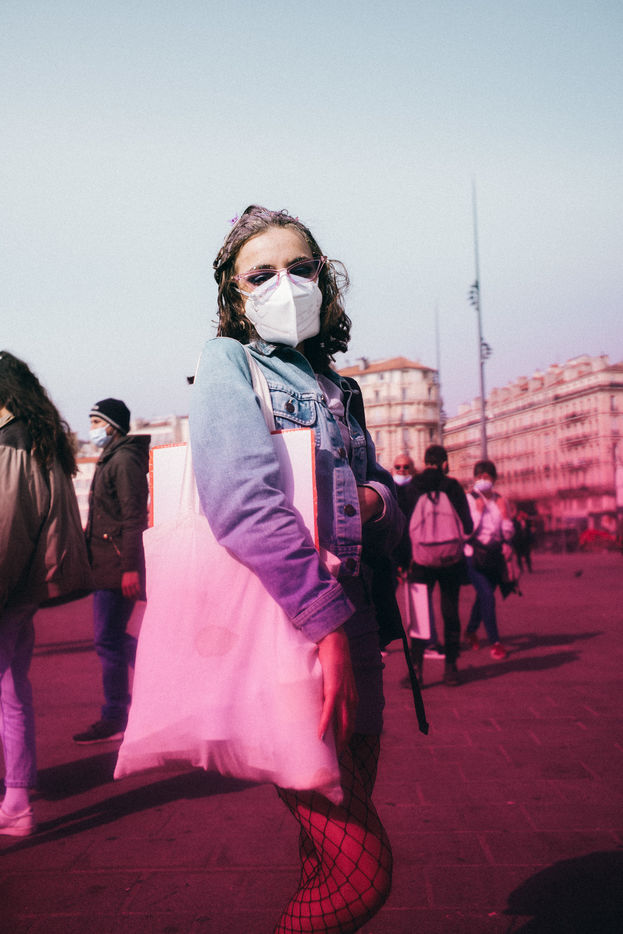 08 March 2021. Marseilles. France. International Day of Struggle for Women's Rights. Rally on the Old Port of Marseille, feminist slogans and collages.
