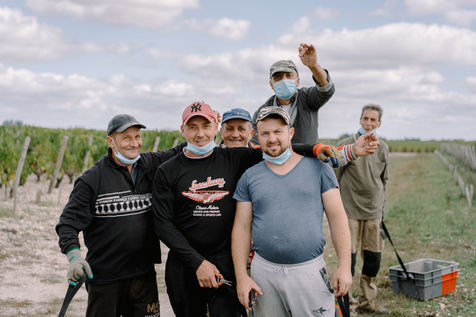Nous sommes dans les vignes d'un Grand Cru Classé français. Aujourd'hui, ce sont des centaines de roumains venus travailler à 3000 kilomètres de chez eux. Chaque année et pendant les quelques semaines de vendanges, ils viennent travailler en France, embauchés par une entreprise française. Ces entreprises, spécialisées dans les différents services aux vignobles de la région bordelaise, embauchent des centaines de travailleurs d'Europe de l'Est, parfois de Pologne, parfois de Roumanie.
