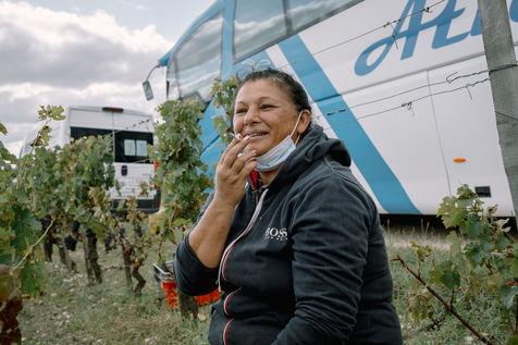 Tout est légal, conformément aux lois de l'Union européenne, les travailleurs sont employés selon le code du travail français, ils ont un contrat et sont payés selon le salaire minimum local. Ils dorment dans le camping voisin, un bus les amène tous les jours dans les vignobles pour les 8 heures de travail quotidien.Habillés chaudement, ce n'est rien d'autre qu'une journée de travail habituelle pour eux, ce mois-ci en France, le mois dernier en Angleterre sur un chantier, le mois prochain en Espagne pour la récolte des pairs avant un repos bien mérité chez eux en Roumanie où leurs familles attendent leur retour.
