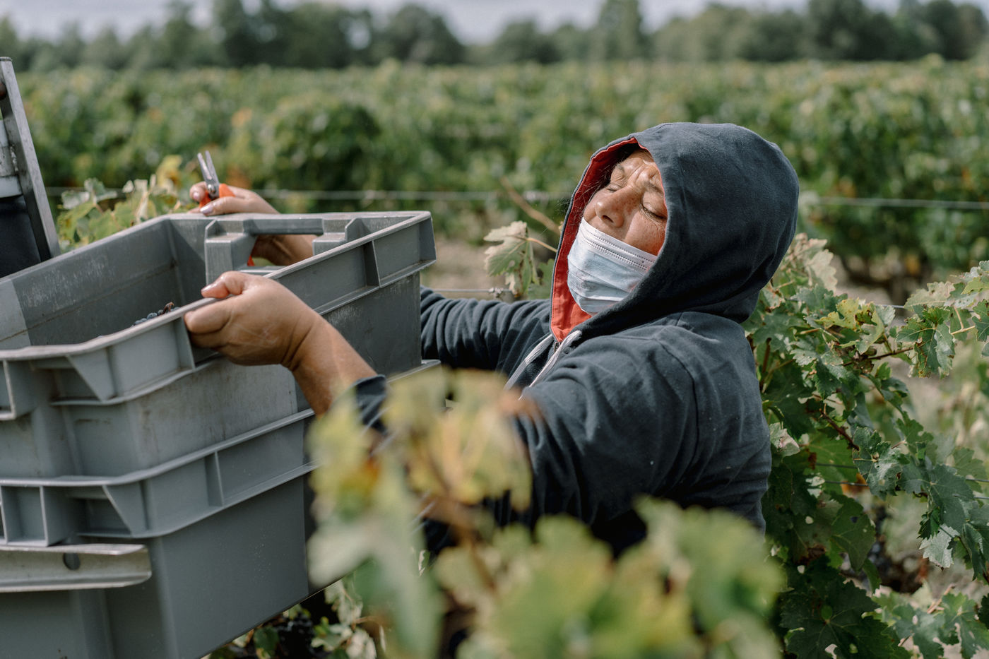 We are in the wineyeards of a French Grand Cru Classé. This day they are hundreds Romanians working 3000 kilometers away from their homes. Every year and during the few weeks of harvesting, they come work in France hired by a french companies. Those companies, specialized in different services for wineyards in the Bordeaux region, hires hundrers of workers from east europe, sometimes from Poland, sometimes from Romania.