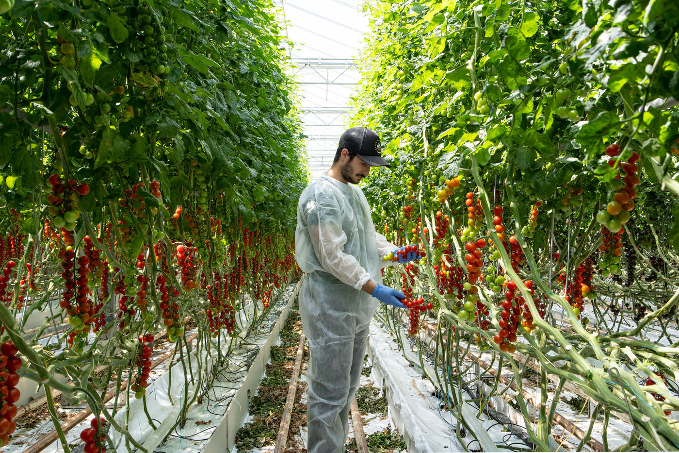 Des serres à perte de vue, une température et un éclairage parfaitement maîtrisés, des tomates à la forme et à la couleur parfaites. Entrer dans les serres du leader français de la tomate grappe "Le Jardin de Rabelais", c'est avoir un aperçu du futur, ou de ce que pourrait être le futur.