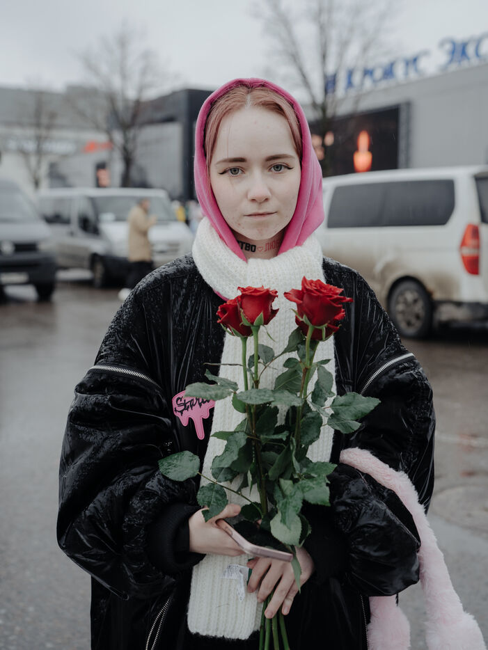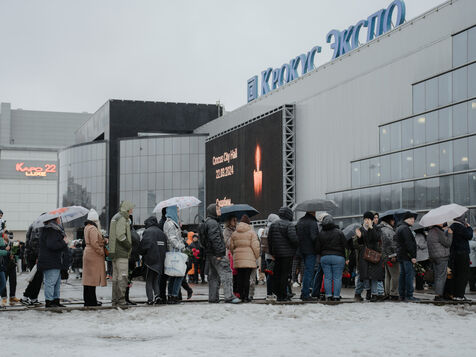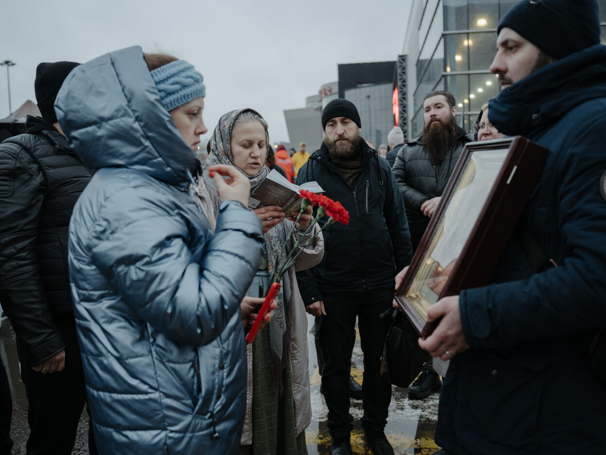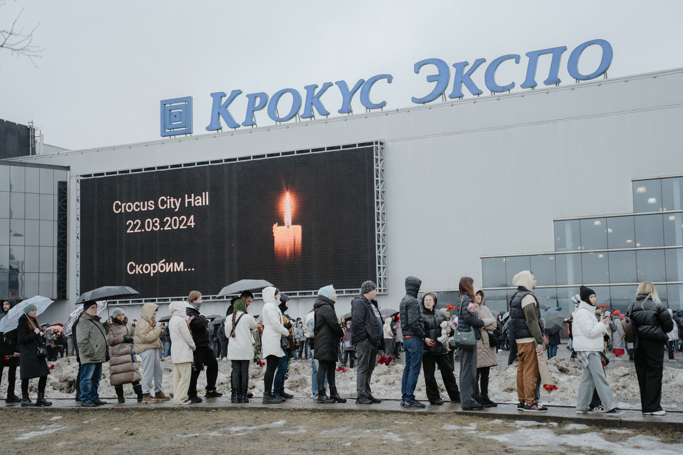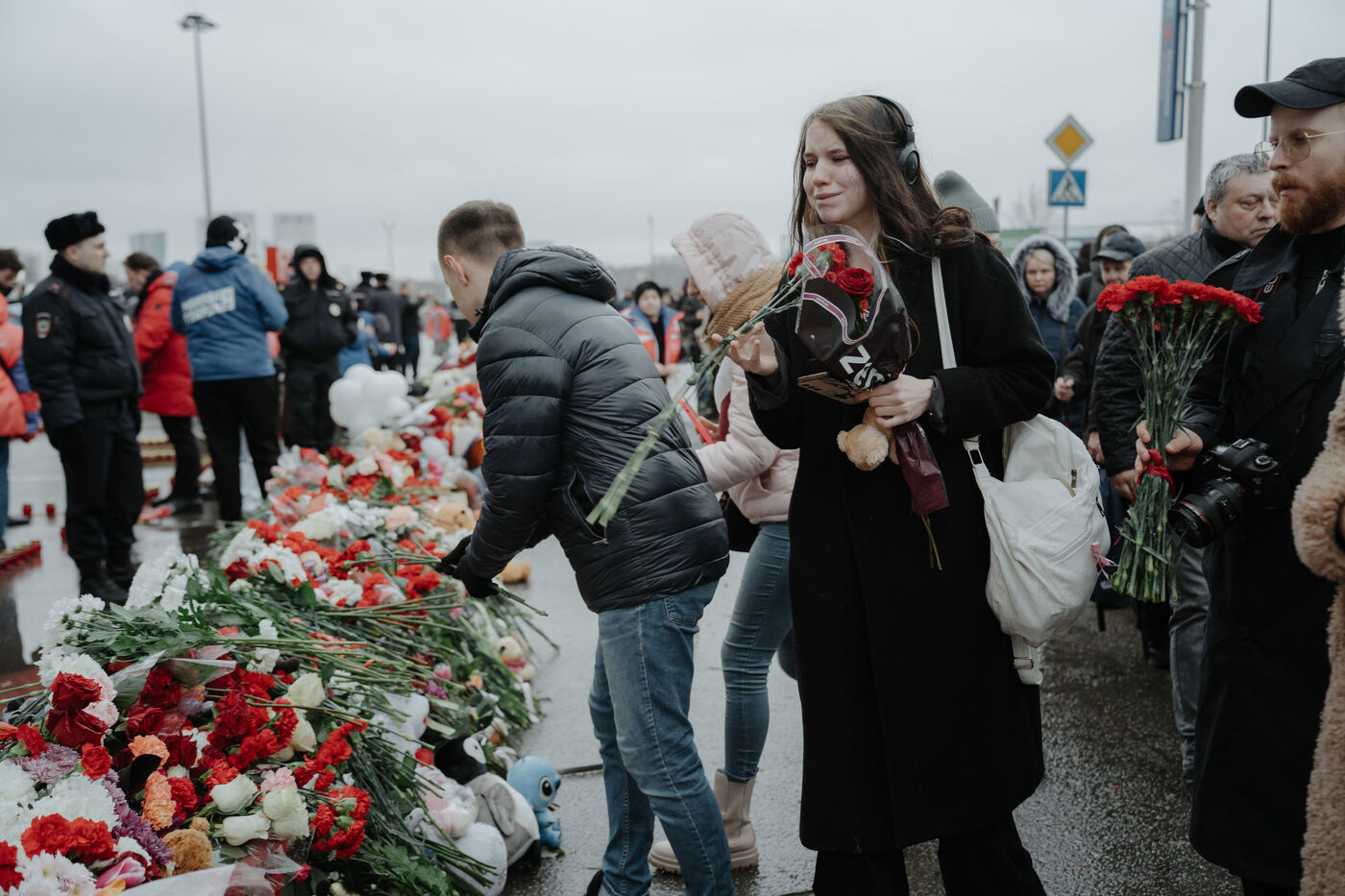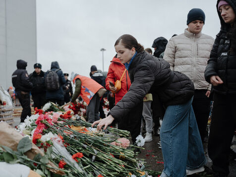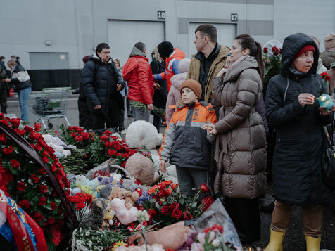 RUSSIA, MOSCOW. Hundreds of Russians gather to pay their respects and lay flowers at the site of the terrorist attack on March 22, 2024.