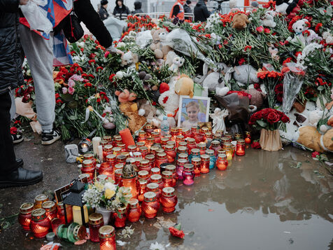 Des centaines de Russes viennent se recueillir et déposer des fleurs sur le lieu de l'attaque terroriste du 22 mars 2024.