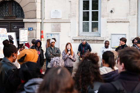 A l'appel du collectif Jamais sans toit, plusieurs collectifs mobilisés sur la question du droit au logement se sont réunis place Guichard à l'approche de la fin de la trêve hivernale pour protester contre le manque de moyens alloués à la lutte contre le sans-abrisme.