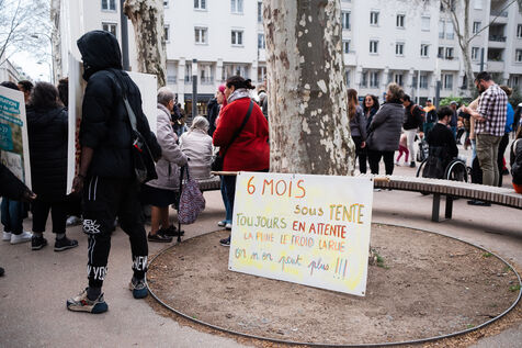 At the call of the Jamais sans toit collective, a number of groups working on the issue of the right to housing gathered in Place Guichard as the end of the winter break approached, to protest against the lack of resources allocated to the fight against homelessness.