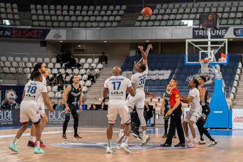France, Nantes, December 16, 2022. In the 10th week of the French second division basketball championship, Nantes narrowly lost to Boulazac Basket Dordogne. After a complicated first half, the Nantes club woke up too late to catch up with their opponent who was only 10 points ahead of them. In the end, it was Boulazac Basket Dordogne who won with only a 9-point lead (67-76) and finished in fourth place in the provisional ranking, while the Nantes club ranked twelfth in the provisional ranking but with a game less to play compared to his opponent. The NBH will meet the Jeanne-d'Arc Vichy-Clermont Basket club for its tenth meeting of the championship on December 20. Thomas Lukes/Hans Lucas.