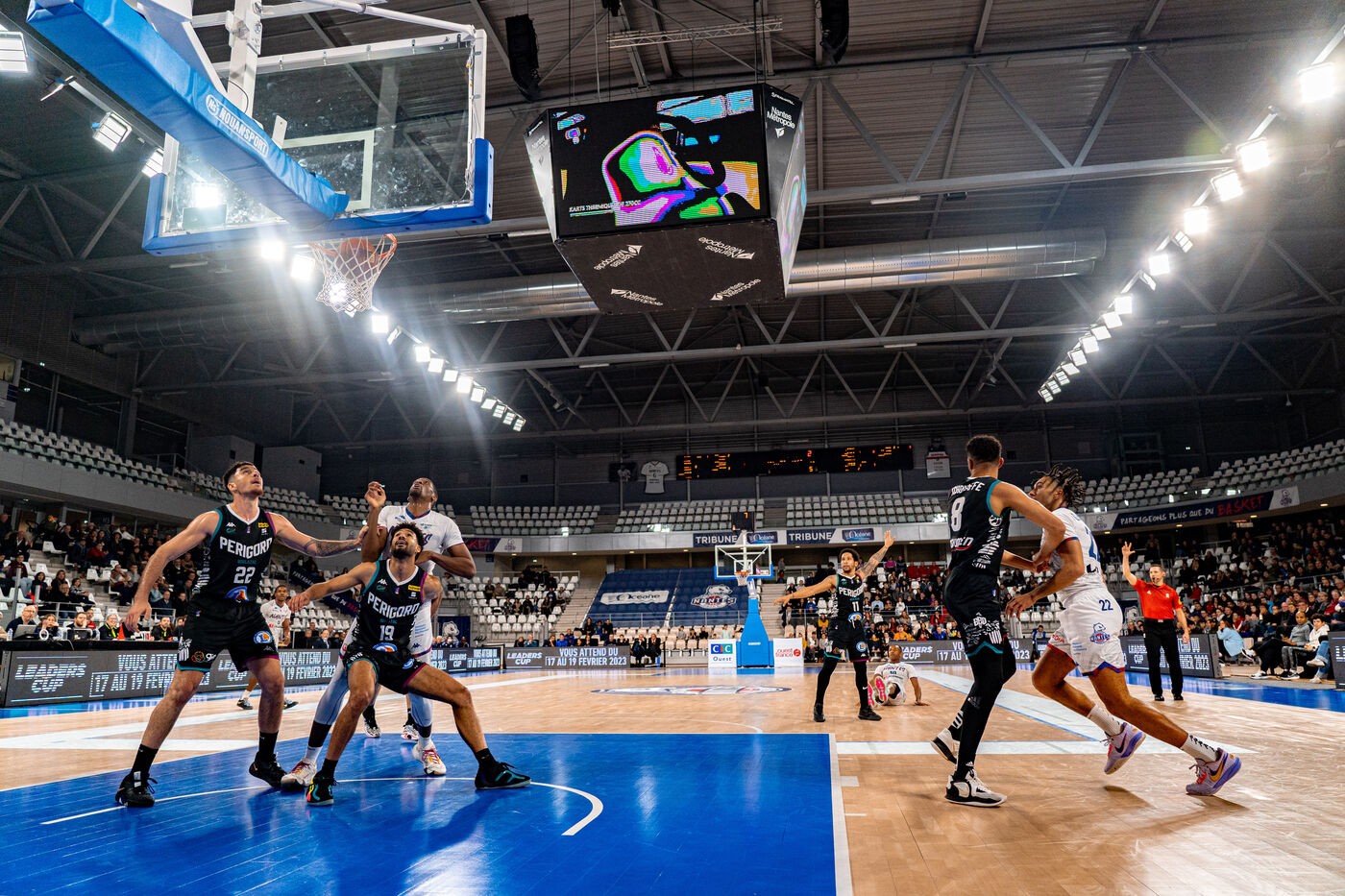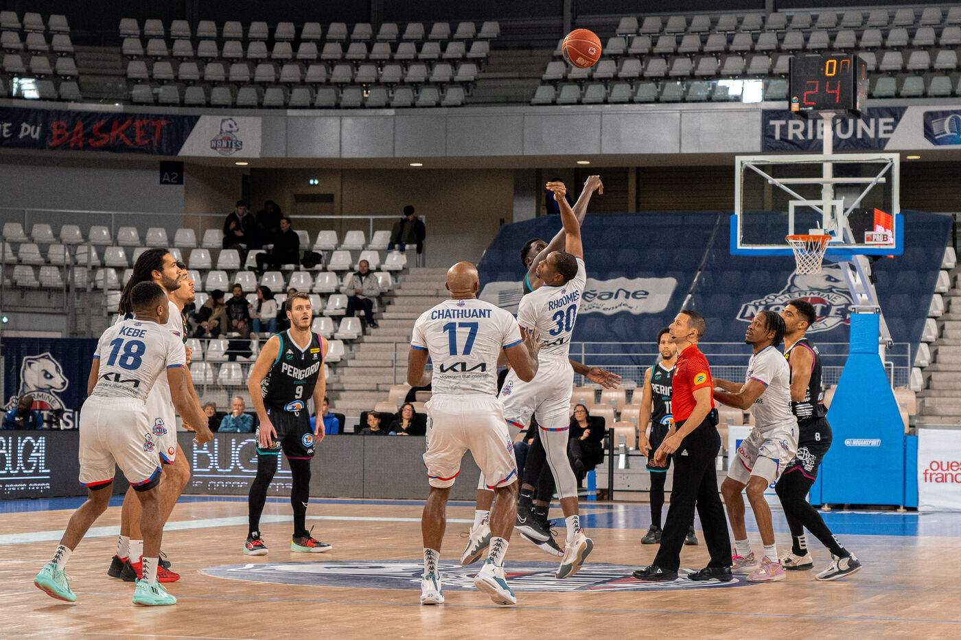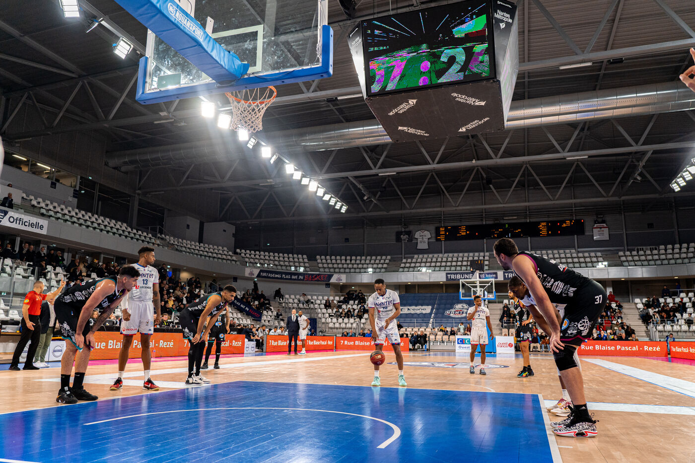 France, Nantes, le 16 décembre 2022. A la 10e semaine du championnat de France de basket-ball de deuxième division, Nantes s?incline de justesse face au Boulazac Basket Dordogne. Après une première mi-temps compliquée, le club de Nantes se réveille trop tardivement pour rattraper son adversaire qui ne le devance que de 10 points. C?est finalement le Boulazac Basket Dordogne qui remporte la victoire avec seulement 9 points d?avance (67-76) et finit à la quatrième place du classement provisoire, le club nantais quant à lui se positionne douzième sur le classement provisoire mais avec un match en moins de jouer par rapport à son adversaire. Le NBH rencontrera le Jeanne-d?Arc Vichy-Clermont Basket club pour sa dixième rencontre du championnat le 20 décembre prochain. Thomas Lukes / Hans Lucas.