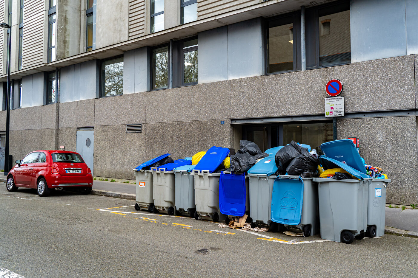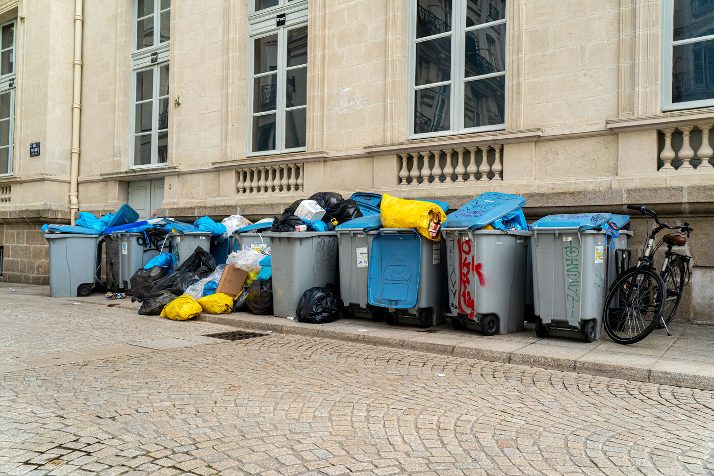 France, Nantes, March 15, 2023. Waste is piling up while the strike by the garbage collectors against the pension reform continues. The strike movement launched by the Parisian garbage collectors against the new pension reform extending their retirement age by two years is spreading in the big cities of the country as here in Nantes.