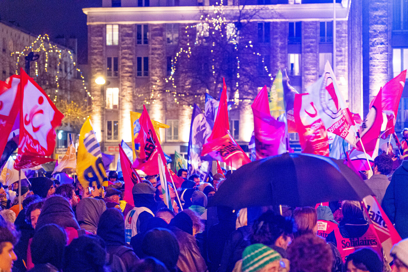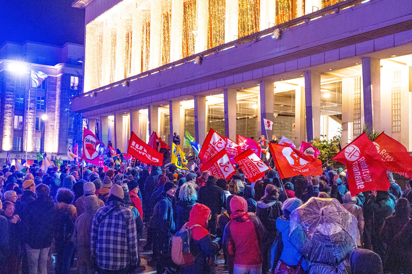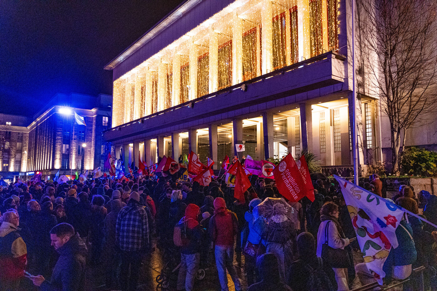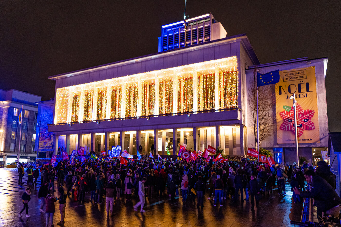 Le 21 décembre 2023, à Brest, quelques centaines de personnes se sont rassemblées et ont défilé dans les rues de Brest pour protester contre l'application de la loi immigration recemment votées à l'assemblée nationale.