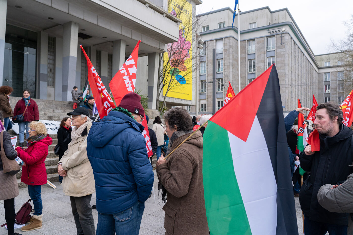 France, Brest, le 27 janvier 2024, se tenait aujourd'hui un rassemblement en soutien au peuple palestinien suite à la décision de la CIJ de contraindre Israël d'empêcher tout risque de génocide dans la bande de Gaza.