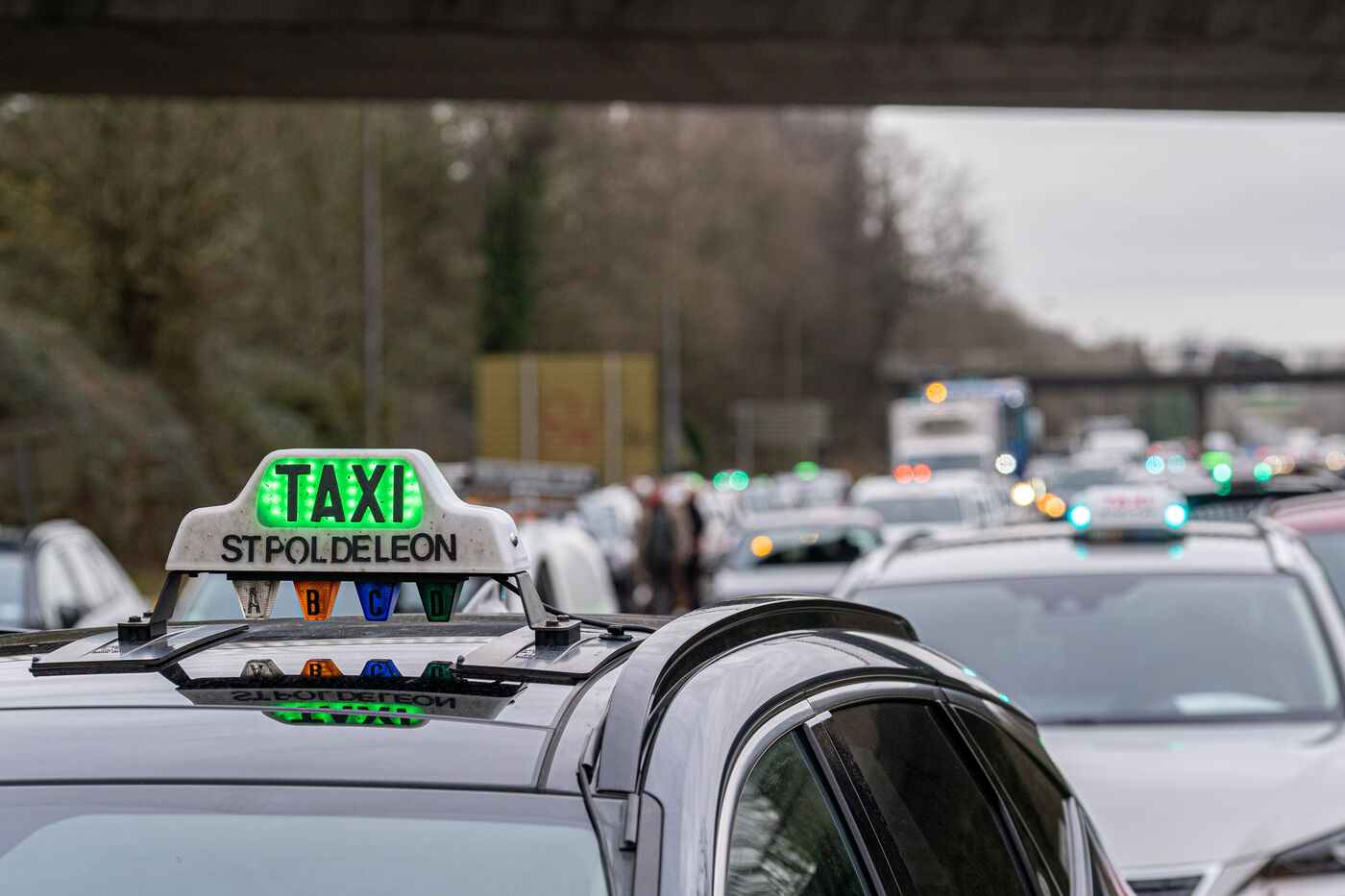 blocage filtrant organisé par les taxis du Finistère Nord à Brest