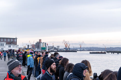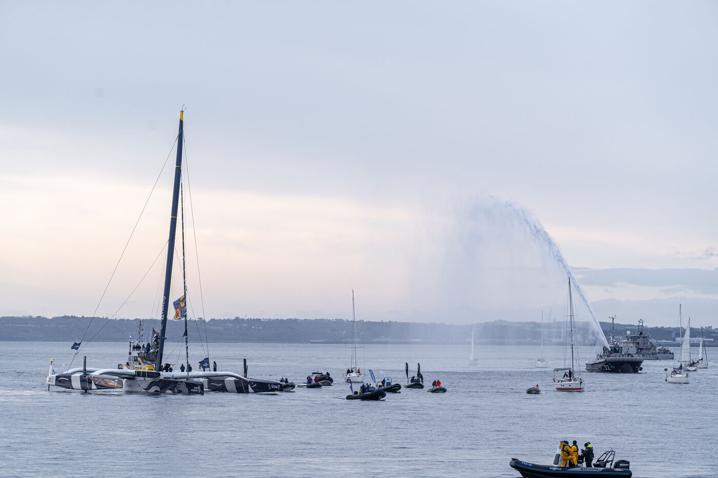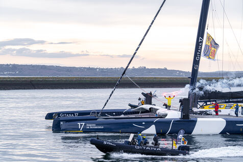 Arrivée de Charles Caudrelier à Brest, vainqueur de l'Arkea Ultim Challenge