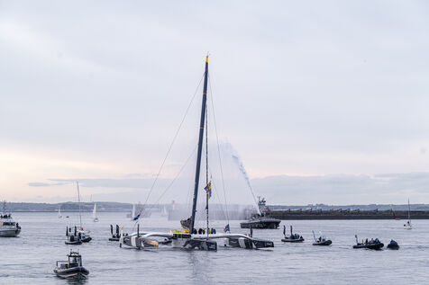 Arrival of Charles Caudrelier in Brest, winner of the Arkea Ultim Challenge