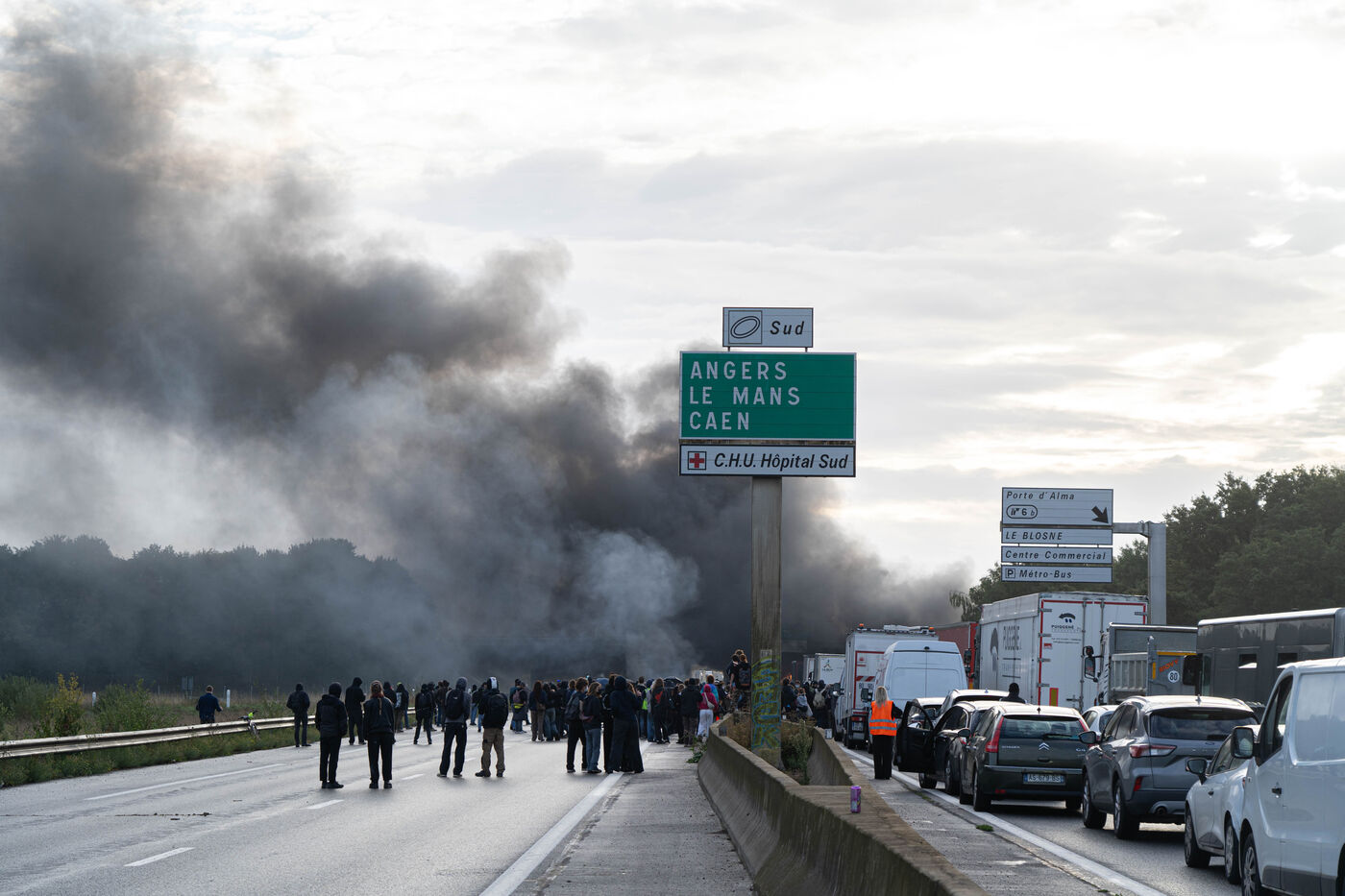 France, Rennes, le 10 septembre 2025, plusieurs rassemblements se sont organisés sur les réseaux sociaux afin de bloquer la ville, environ 250 manifestant étaient réunis dès 7h du matin au niveau de la station métro Henry-Fréville afin de bloquer la rocade sud de Rennes.