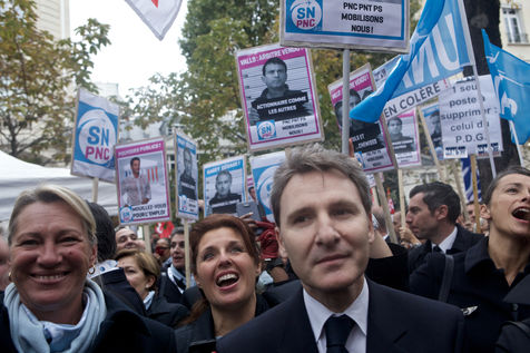 Rassemblement des salariés d'Air France pour protester contre les méthodes d?interpellations de salariés Air France suite aux événements du 5 octobre 2015. A proximité de l'Assemblée Nationale. Le 22 octobre 2015 a Paris.