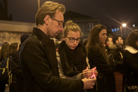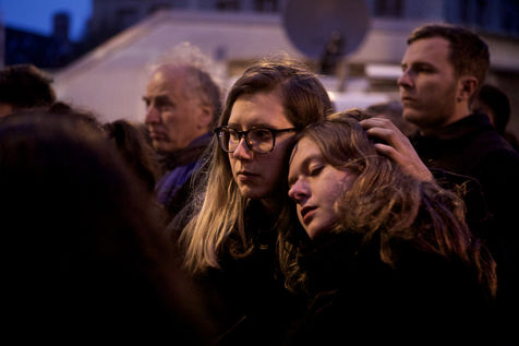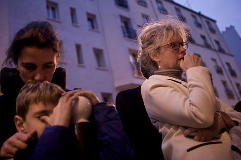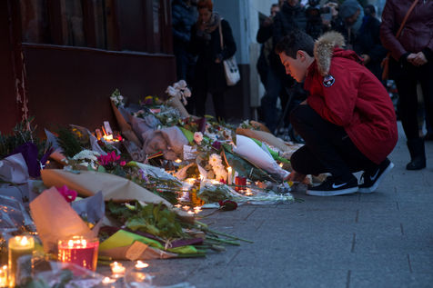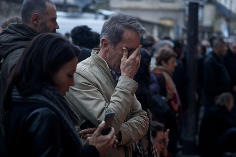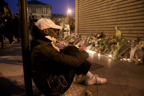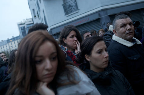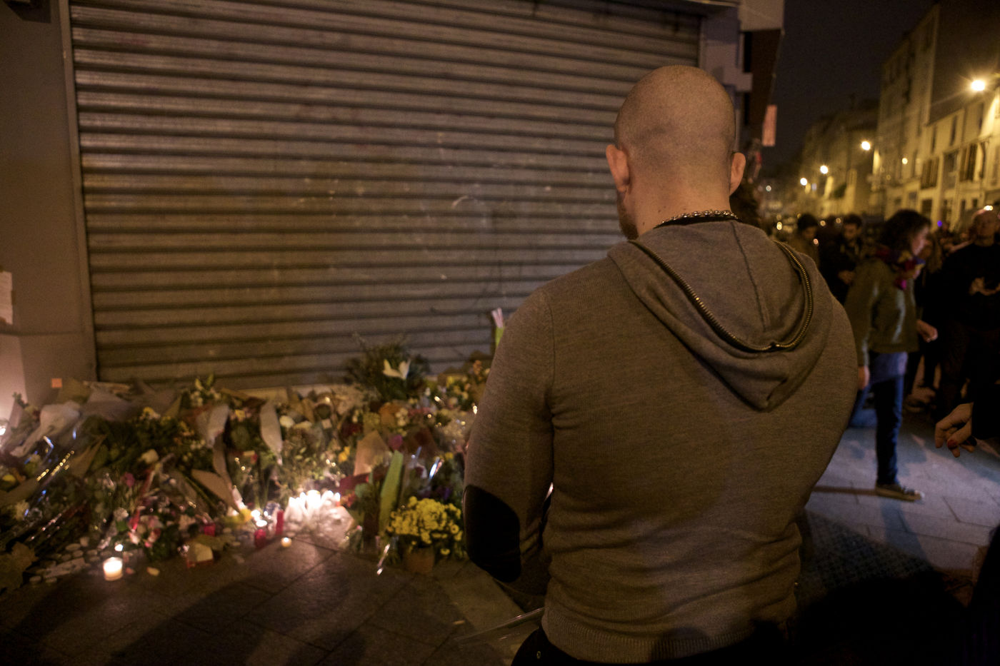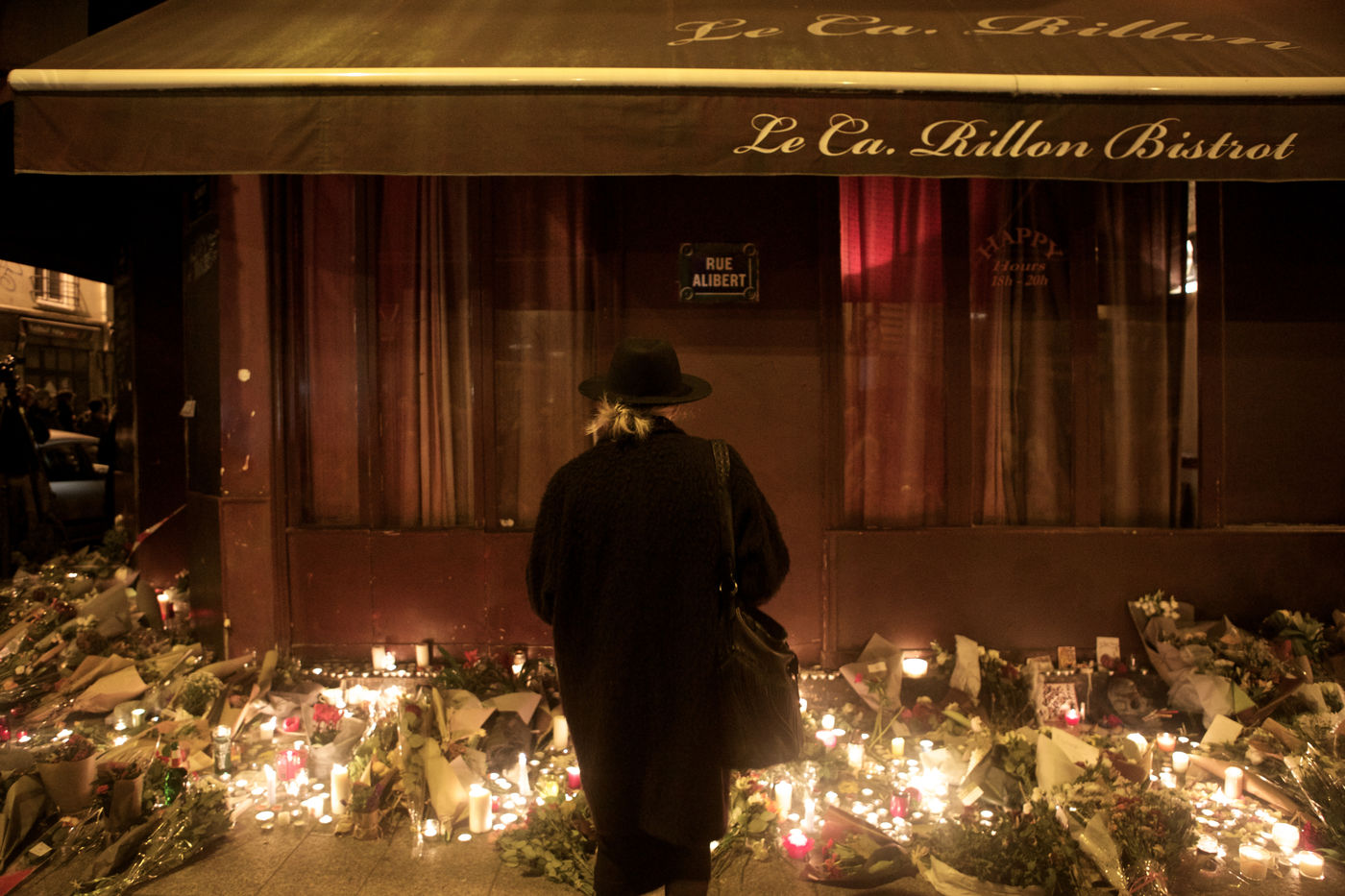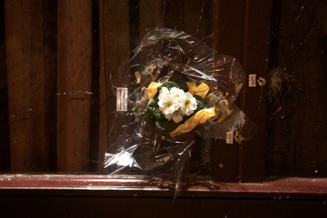 Attaques terroriste, le jour d'après. Receuillement devant les cafés Carillon et le Petit Cambodge 14 novembre 2015, Paris, France.