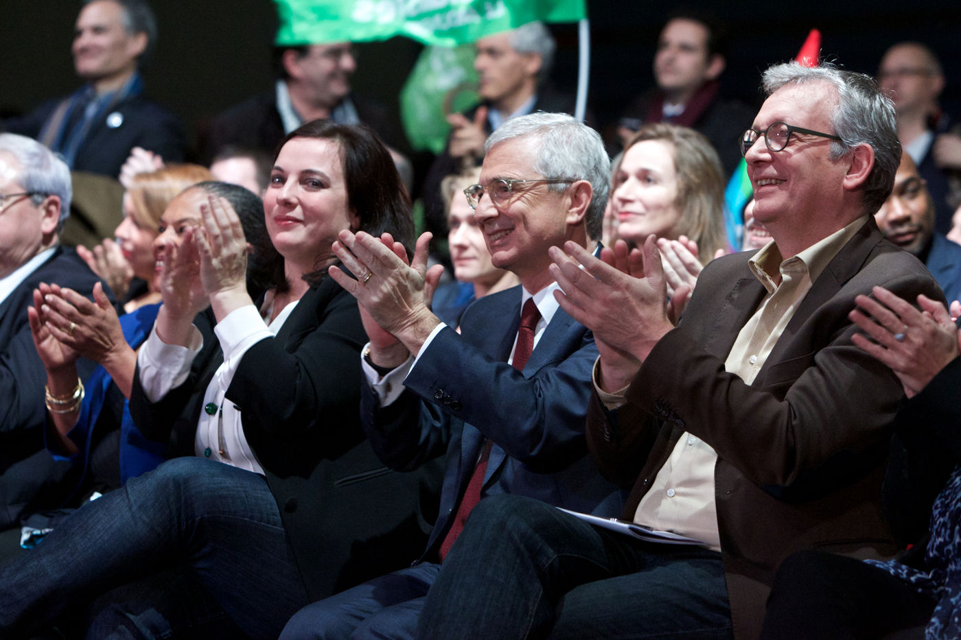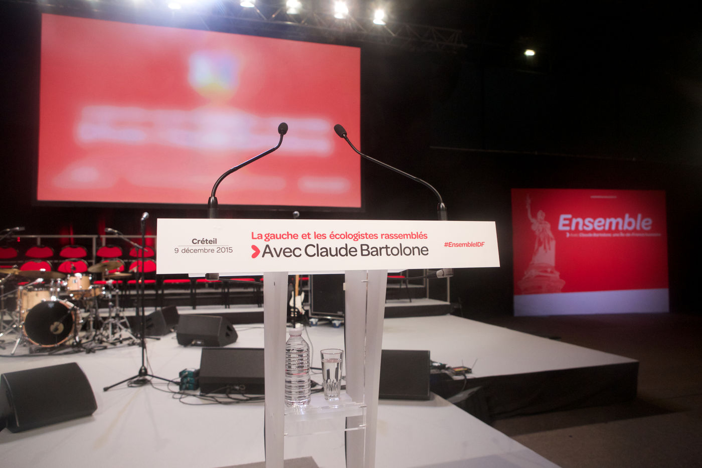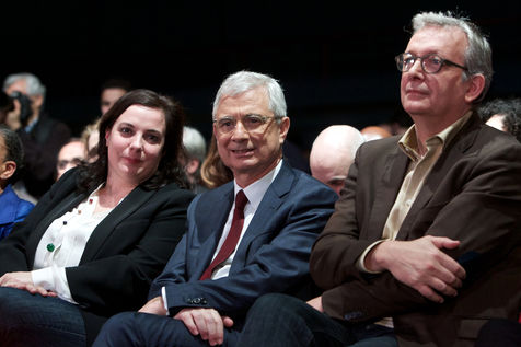 Meeting de Claude Bartolone le 9/12/15 au Palais des sports Robert-Oubron 5 Rue Pasteur Vallery Radot, 94000 Créteil a l'occasion de l'entre deux tours des élections régionales des 6 et 13 décembre 2015 intitulé : La gauche et les ecologistes rassemblés autour de Claude Bartolone, en présence d'Emmanuel Cosse, Pierre Laurent, Anne Hidalgo, Benoit Hamon, Christiane Taubira, Cecile Duflot et Jean-Christophe Cambadélis.