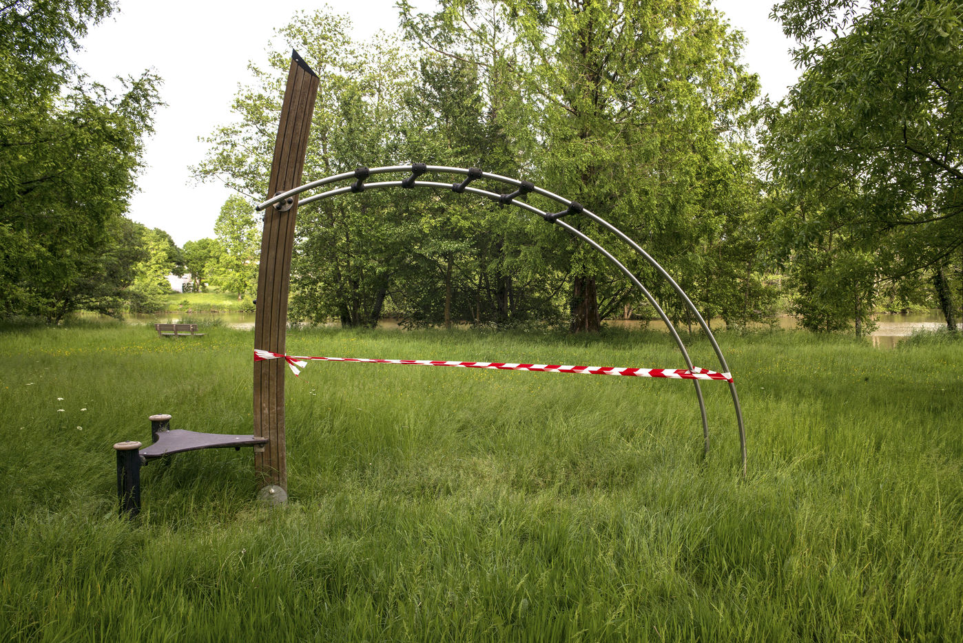 Parfois des paysages surréalistes sans l' intervention de l'homme. Cette petite base de loisirs de Parthenay, n'a pas vu une tondeuse à gazon ou une débroussailleuse depuis presque trois mois.