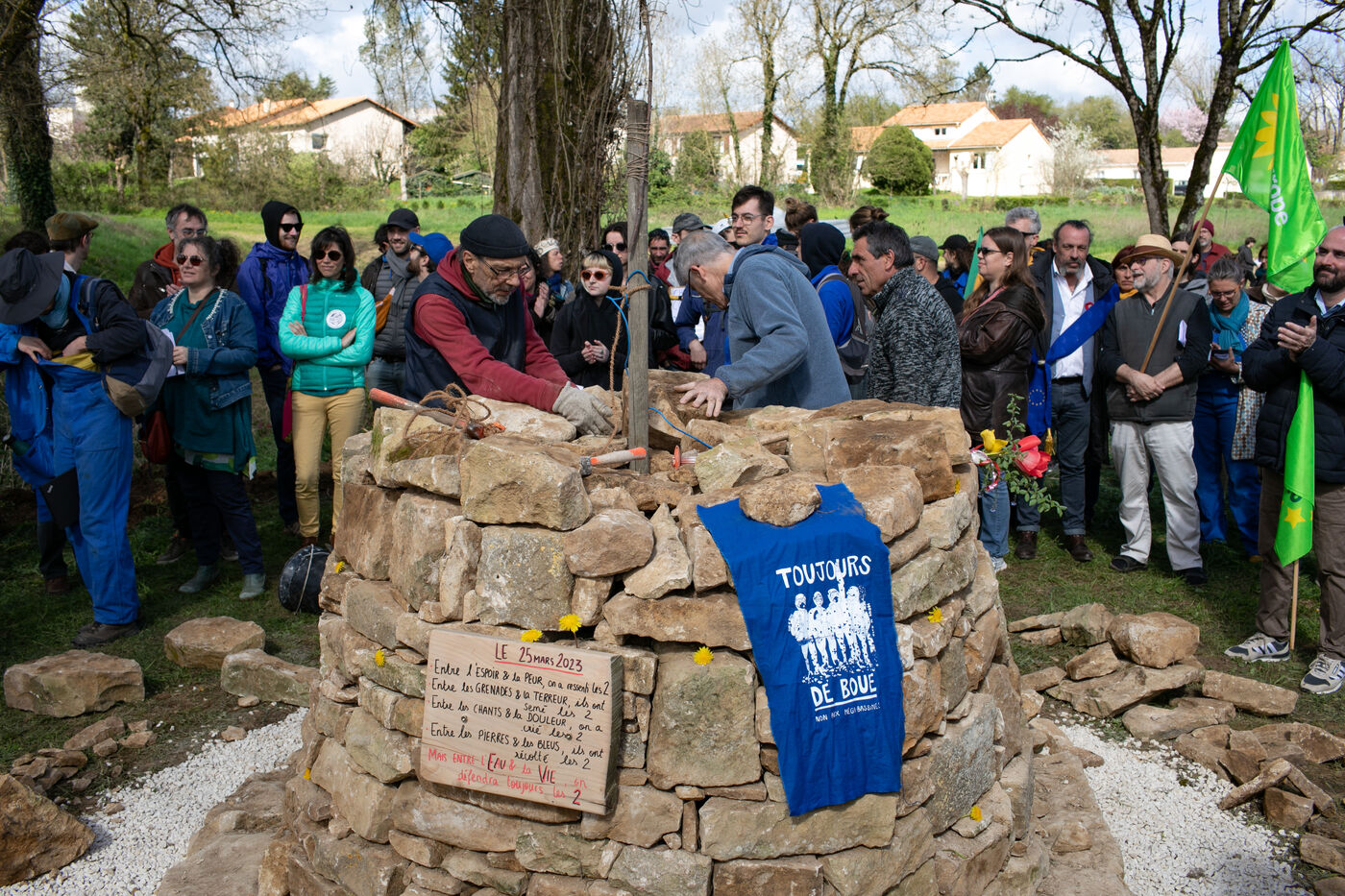 One year on, the anti-basin campaigners are determined to continue their fight, and are preparing new actions. On Saturday 23 March 2024, they are planning "commemor'actions" in Melle. They plan to build a cairn in support of the victims of police violence, symbolising resistance in the face of oppression. They are then organising a picnic and a pétanque and shuffleboard tournament, convivial activities designed to bring the community together and maintain morale.