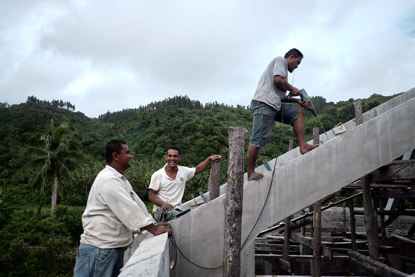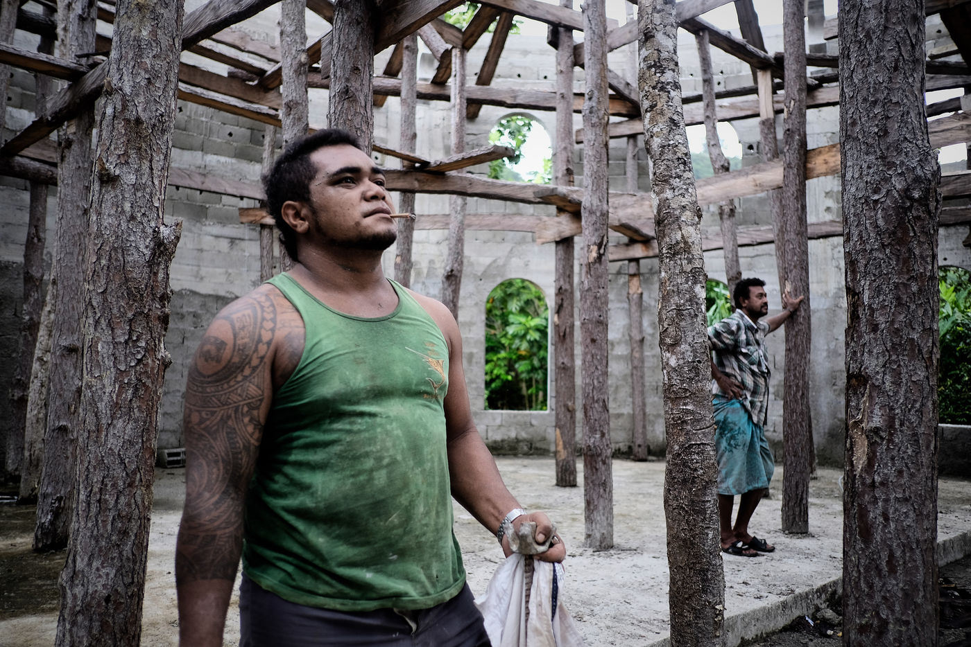 Futuna is a French island in the Pacific. It has about fifteen churches for 3600 inhabitants. And people were still building two new ones in March 2015, on a voluntary basis, with the financial contribution of the entire community. These construction sites of another age are revealed, as we go along, as a cement for this small oceania society.
