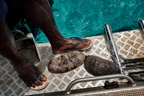 La réalité sur les îles Belep se révèle beaucoup moins faste que son trésor pourrait le laisser penser. Les pêcheurs locaux sont le tout premier maillon de la chaîne. Ils travaillent souvent dans des conditions rudimentaires, et tirent des revenus sans commune mesure avec le prix de vente finale des holothuries tirées de leur lagon. Tout l'enjeu aujourd'hui est de structurer la filière et de protéger la ressource. Les embarcations doivent pousser toujours plus loin pour ramener leur précieux butin...