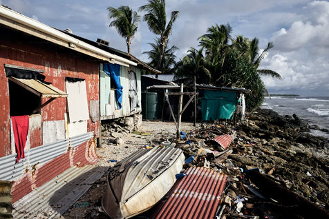 Ce recit photographique montre l impact du changement climatique sous un angle humain. A l echelle d une petite ile de pecheurs tres peu resiliente, il a deja des consequences sociales, economiques et sanitaires bien tangibles. Les iles basses du Pacifique ont bien plus a raconter qu une simple histoire de paradis engloutis.