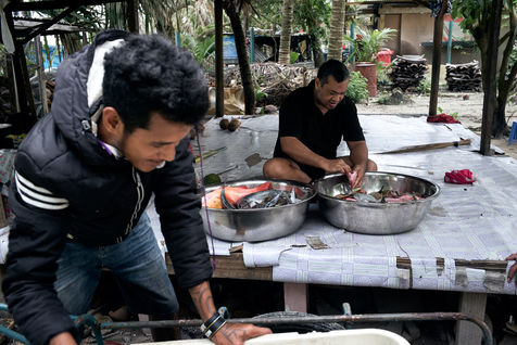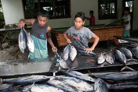 Global warming, its destructive storms and salt water floods undermine any prospect of development. While the state and international programs are building fragile breakwaters, fish are synonymous with survival for the people. On the one hand, coastal fishing is the only subsistence activity, and boats have to push ever further because of pollution and overfishing. On the other hand, the economy of the country is based on the sale of licenses to foreign vessels which hunt schools of tuna on the high seas. Ironically, this activity fuels gigantic canning factories and an international market which contributes itself. greenhouse effect and rising water levels.