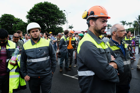 Nouméa, Thursday January 14, 2020. Employees of the Nickel Company (SLN) staged a rally outside the government of new caledonia to defend their jobs. The activity of the subsidiary of the french Eramet group is threatened by repeated blockages and various incidents, which occurred on the sidelines of the dispute over the sale of the Vale NC plant. SLN represents 2,500 direct jobs and nearly 8,000 induced jobs in New Caledonia.