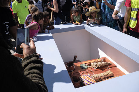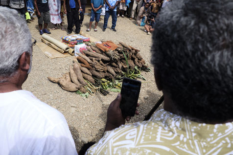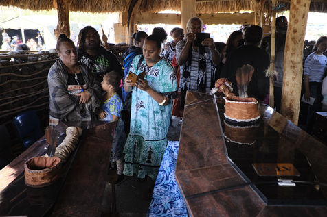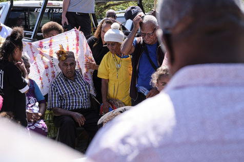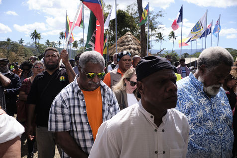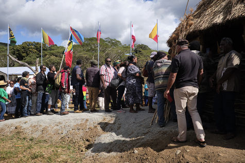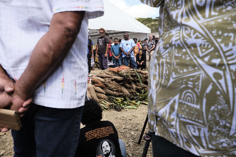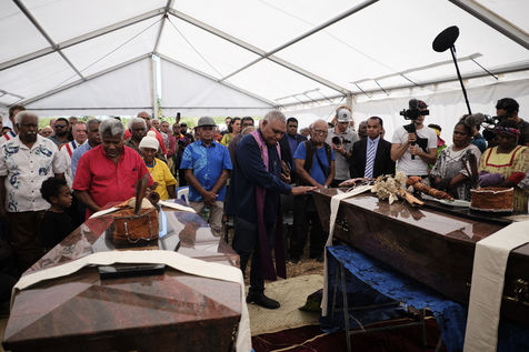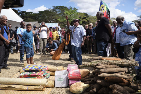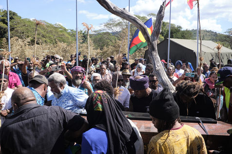 New Caledonia, La Foa, Wednesday September 1, 2021. Burial ceremony of the kanak great chief Atai and his Dao (?sorcerer?) Meche on the Wereha site. They had been killed in action against french colonial authorities on September 1, 1878. The skull of Atai, leader of the kanak insurrection of 1878, and that of his Dao ("sorcerer"), were returned by the French State in 2014, after long years of expectation from his descendants.